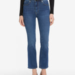 A cropped inseam takes our new Reboot jean up a notch, finishing in a soft bootcut that hits above the ankle. Cut in an ultra stretchy cotton blend for comfortable, all-day wear.
