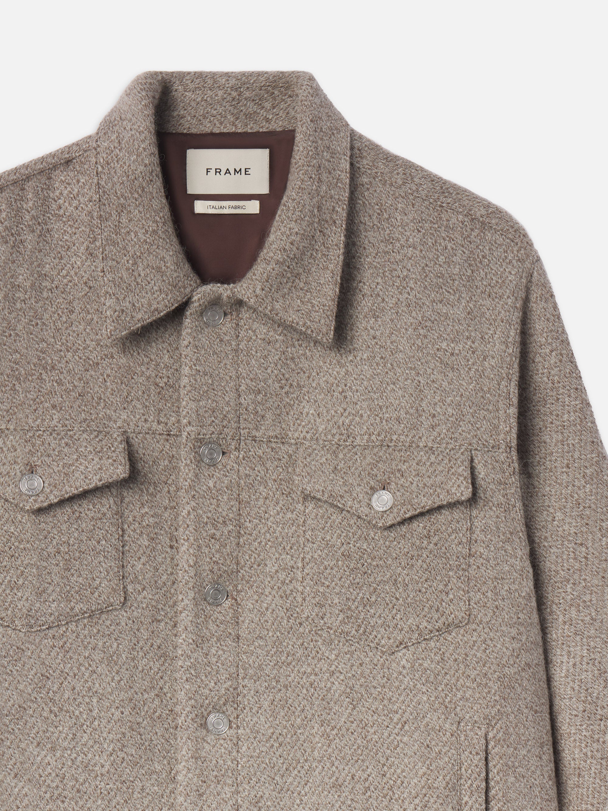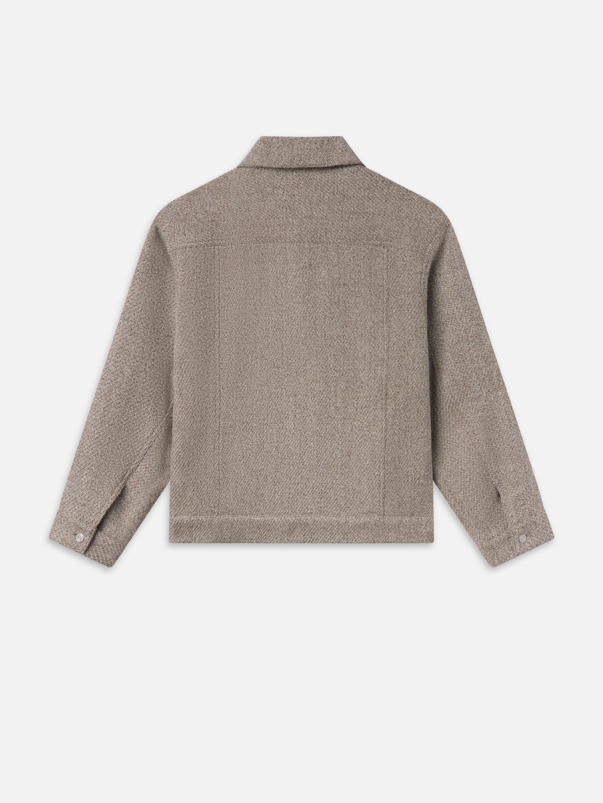 A modern take on the classic trucker jacket, crafted in a cozy wool alpaca blend. The neutral taupe colorway features light variation for visual depth.