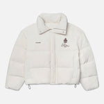 Cropped for a fit that works with wide-legs and winter sportswear, zip up the neck on this abundantly warm Cream puffer to keep out harsh city winds—then wear it open for aprés hour. Crafted from cotton and recycled polyester and finished with functional drawstring cords and the FRAME and Ritz Paris logos in contrasting Bordeaux.