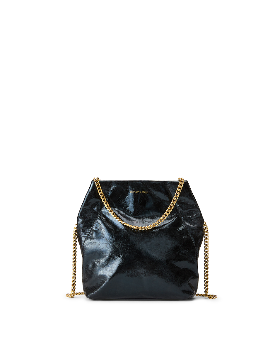 A petite take on the original’s chic, sculptural shape, the aptly named Slouch is defined by its soft silhouette and slight gathering at the sides. An interior card pocket ensures organization while the glossy crinkled leather and gold chain-link strap add glamorous edge. A cool classic for years to come.