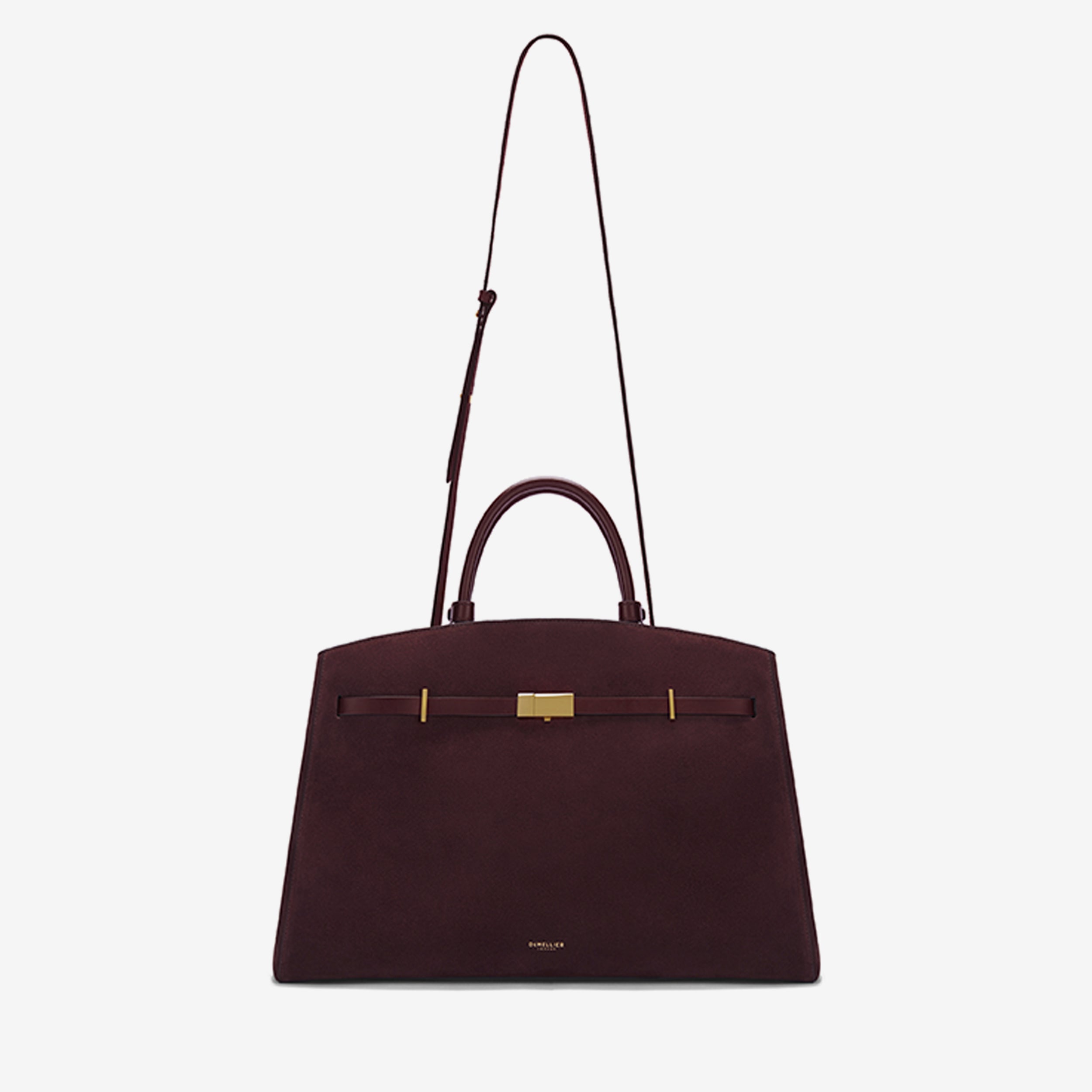 The Hudson is designed to empower, crafted to last. Featuring our signature belted strap and gold-plated lock, it embodies both strength and sophistication. Versatile and spacious, it adapts effortlessly to everyday needs, with expandable side panels that adjust with stud fastenings to provide extra space. Securely closed with a dog clip fastening, it ensures essentials stay safe, while the two leather handle holders keep the top handles neatly together. Complete with a top handle and an adjustable, removable strap for various styling options, this sophisticated day bag can be carried by hand, on the crook of the arm, or as a crossbody. Ethically made from sustainably sourced, LWG gold-rated Italian leather, The Hudson blends timeless style with contemporary refinement.