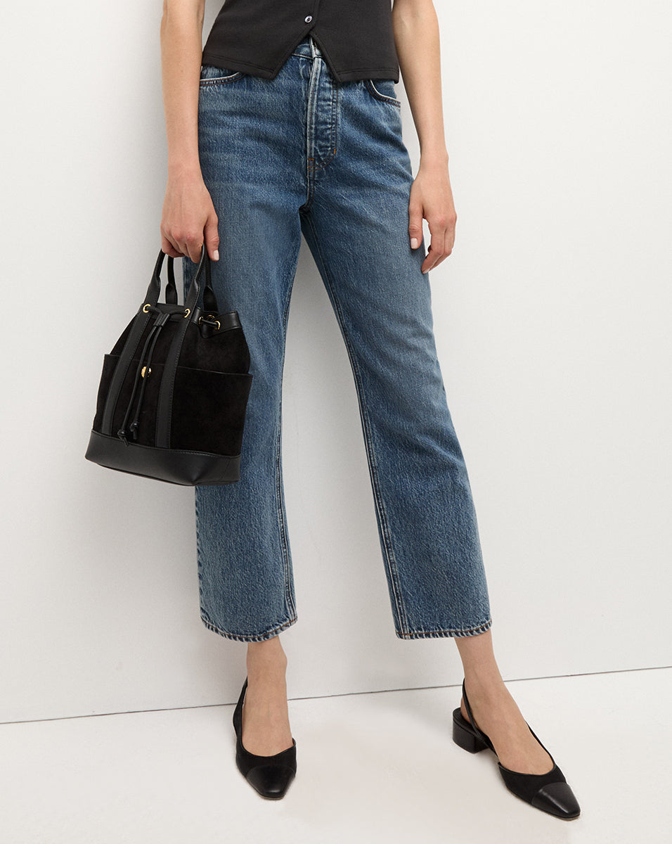 Crafted from soft Italian suede and supple leather, the Goody is perfect for storing your everyday essentials—or goodies. An inner zip pocket as well as outer compartment ensures everything stays organized while the removable shoulder strap allows it to be worn as a crossbody, top-handle, or shoulder bag for maximum versatility.
