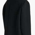 A sleek, funnel-neck minidress that blends tailoring and flou in Italian double-faced crepe selected for its dense, sculptural quality and spongy feel. Darts at notched neckline. Extended long sleeves. Slips on for smooth fit.