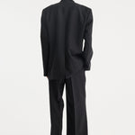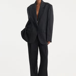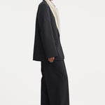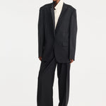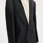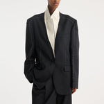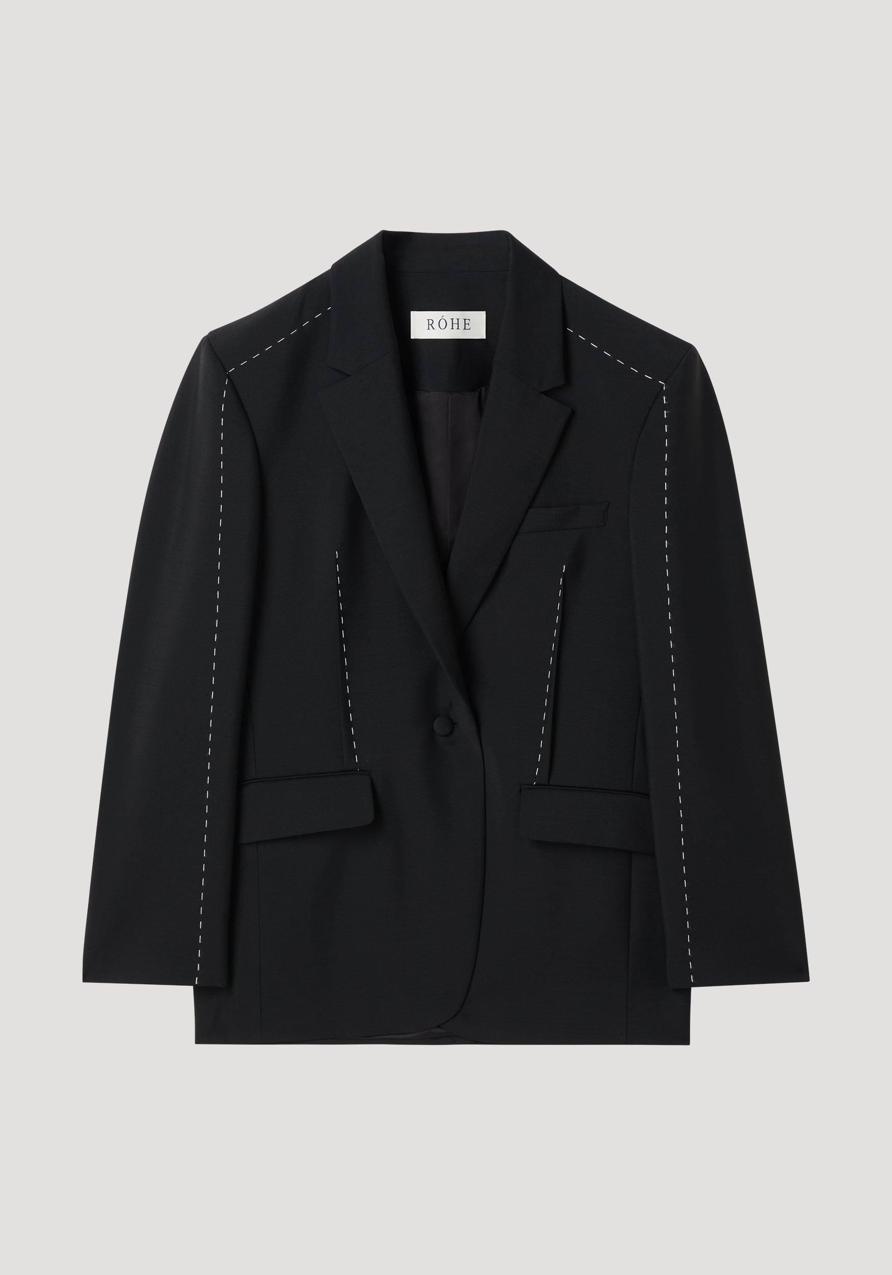 A modern classic with a graphic edge, an oversized blazer framed by contrast stitching that follows the silhouette. Turn up the lapel to reveal a white underside for a sharp monochrome statement. Crafted from a soft virgin wool and mohair blend, woven by a renowned Italian mill specializing in premium tailoring fabrics, this lightweight wool-mohair blend is designed for structure, breathability, and lasting performance. Made with mulesing-free wool, it reflects our commitment to responsible sourcing.