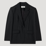 - Oversized blazer, contrast stitching and lapel, single breasted