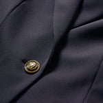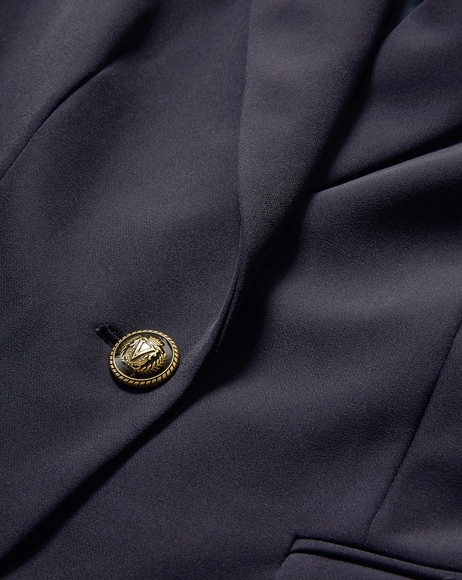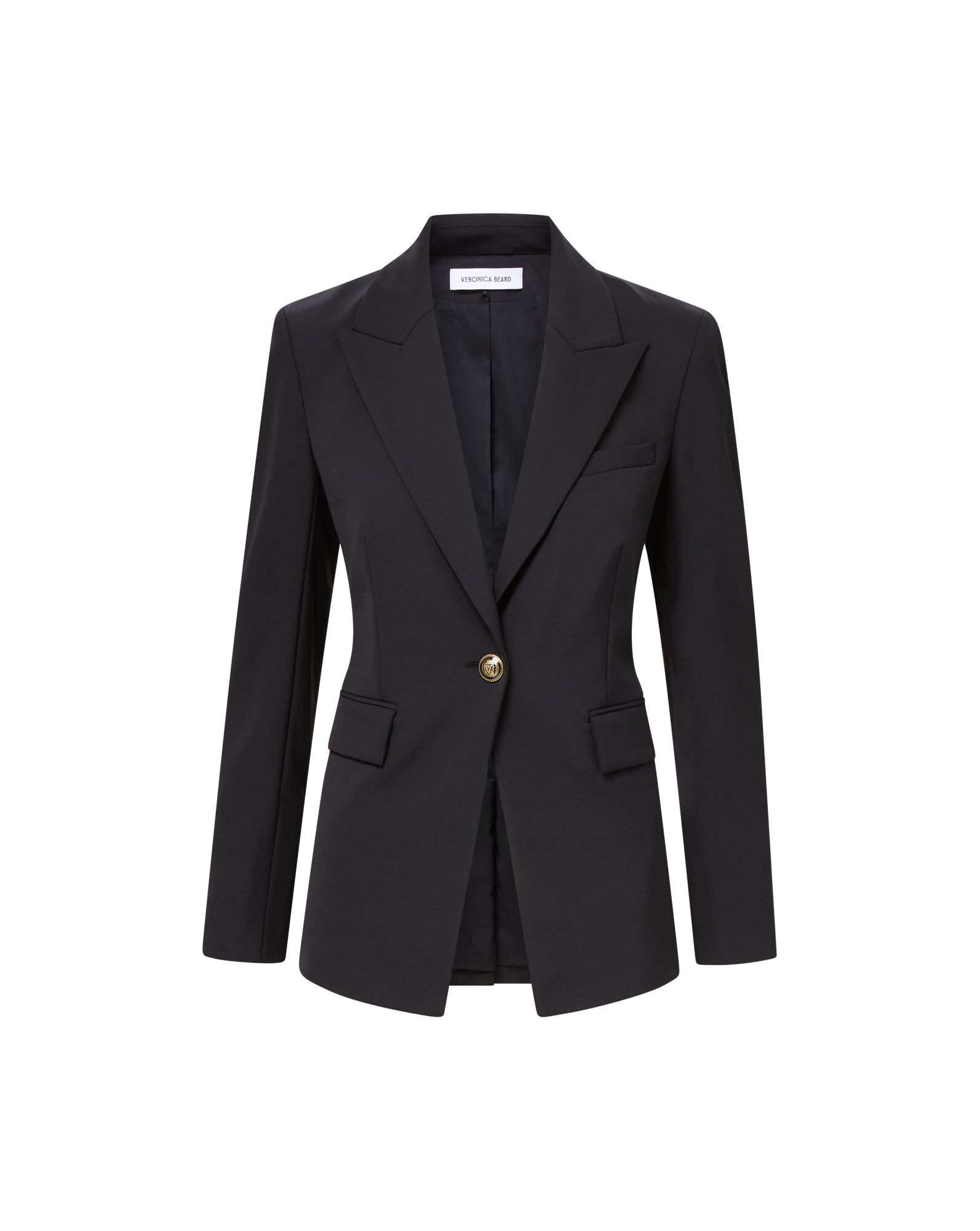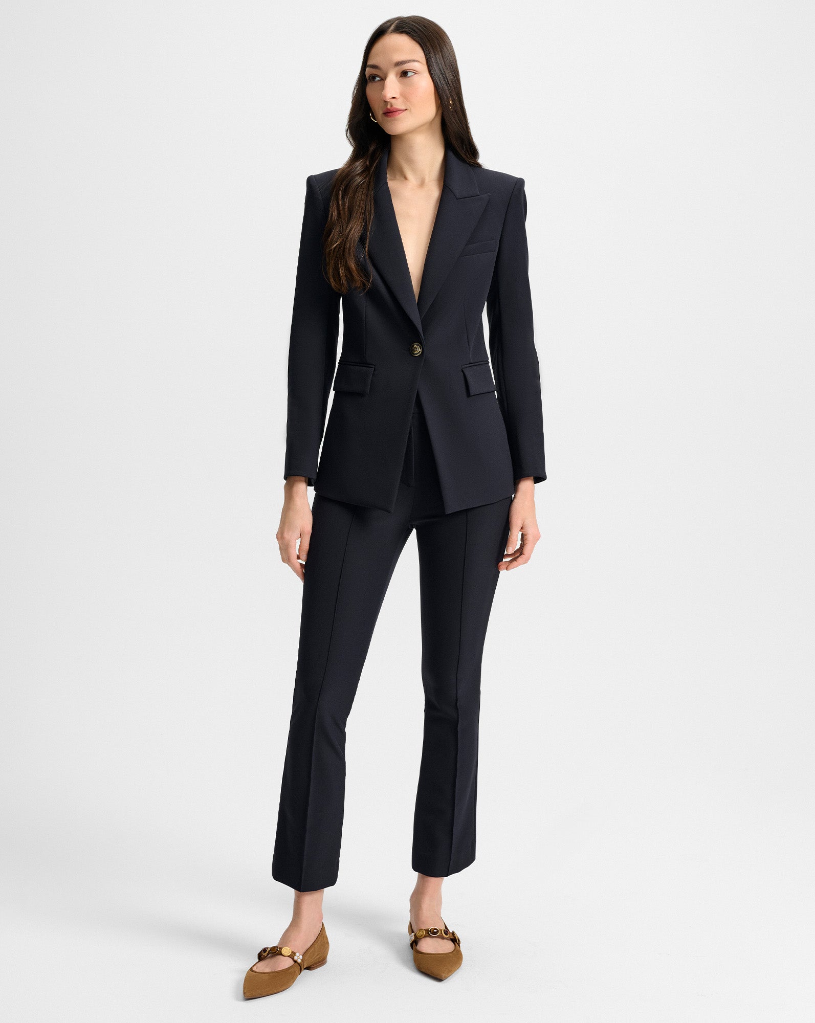 The quintessential navy blazer. Cut for a slim fit, the Naira is constructed from premium stretch blend, allowing for a comfortable fit that moves with you. Featuring single-breasted tailoring and a peak lapel, it’s finished with our signature VB crest buttons and front flap pockets for a polished look. Pair it with the coordinating Dell pant for a complete set—then add a dickey to switch up your look.