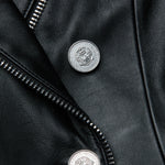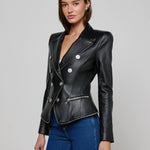 Sculpted and striking, the Ottilie leather blazer in black is the definition of power dressing. Matte buttons and exposed zips infuse it with edge, while precision tailoring contours the waist for a sharp, hourglass silhouette. It's part statement, part armor, and it’s made to turn heads.