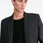 Single-breasted blazer. Easy straight slim fit. Fully constructed with shoulder pads. Flap pockets and chest welt pocket. Two interior pockets. Fully lined.