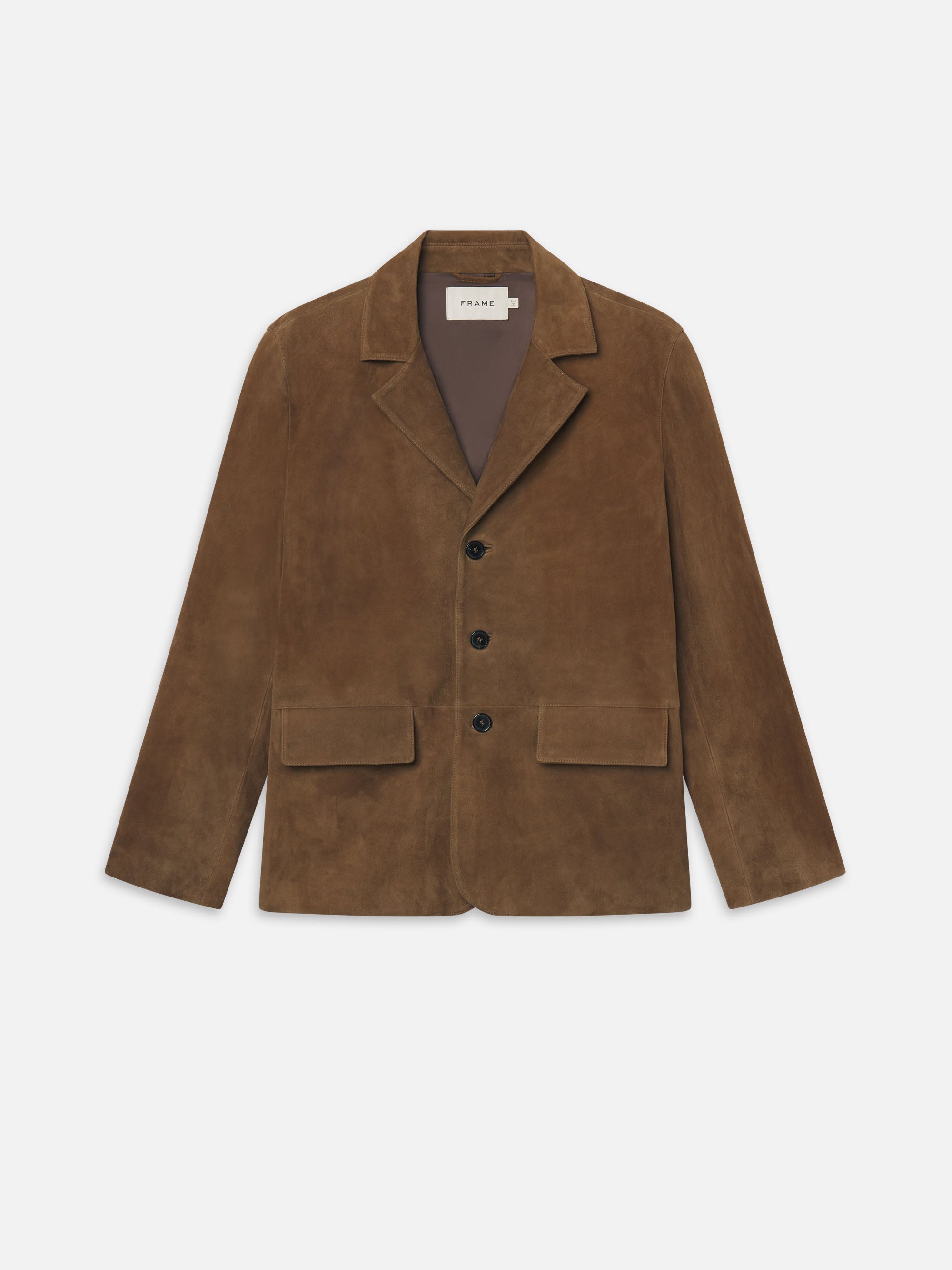 A modern take on the '70s suede blazer. Crafted from rich caramel-colored goat suede.