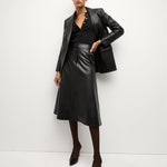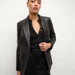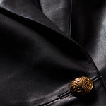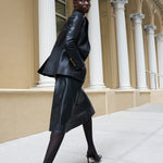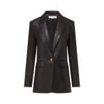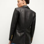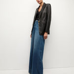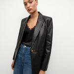 We reimagined the classic single-breasted blazer in supple lambskin leather—equal parts polish and edge. Expertly tailored for a lean, elongated fit, the Vega features a peak lapel, a gold crest button, and flap and welt pockets. Wear with wide-leg leather pants for a cool take on the suit.
