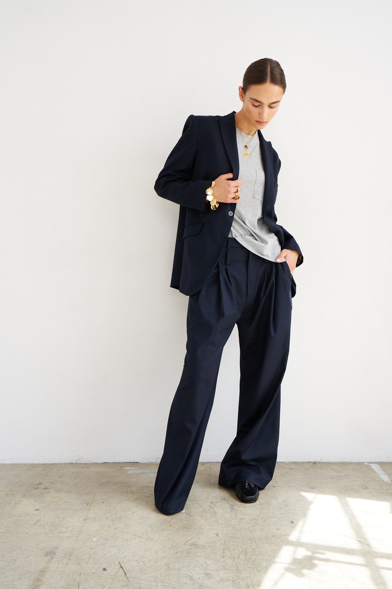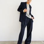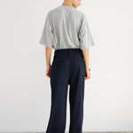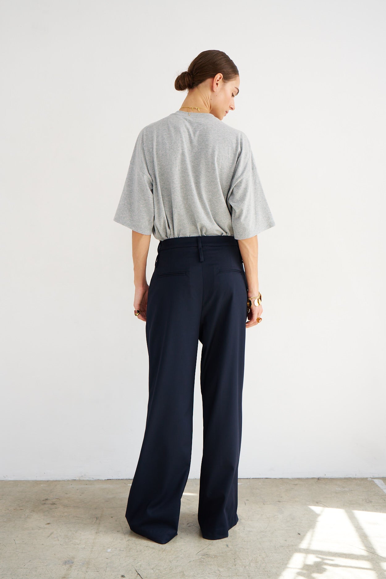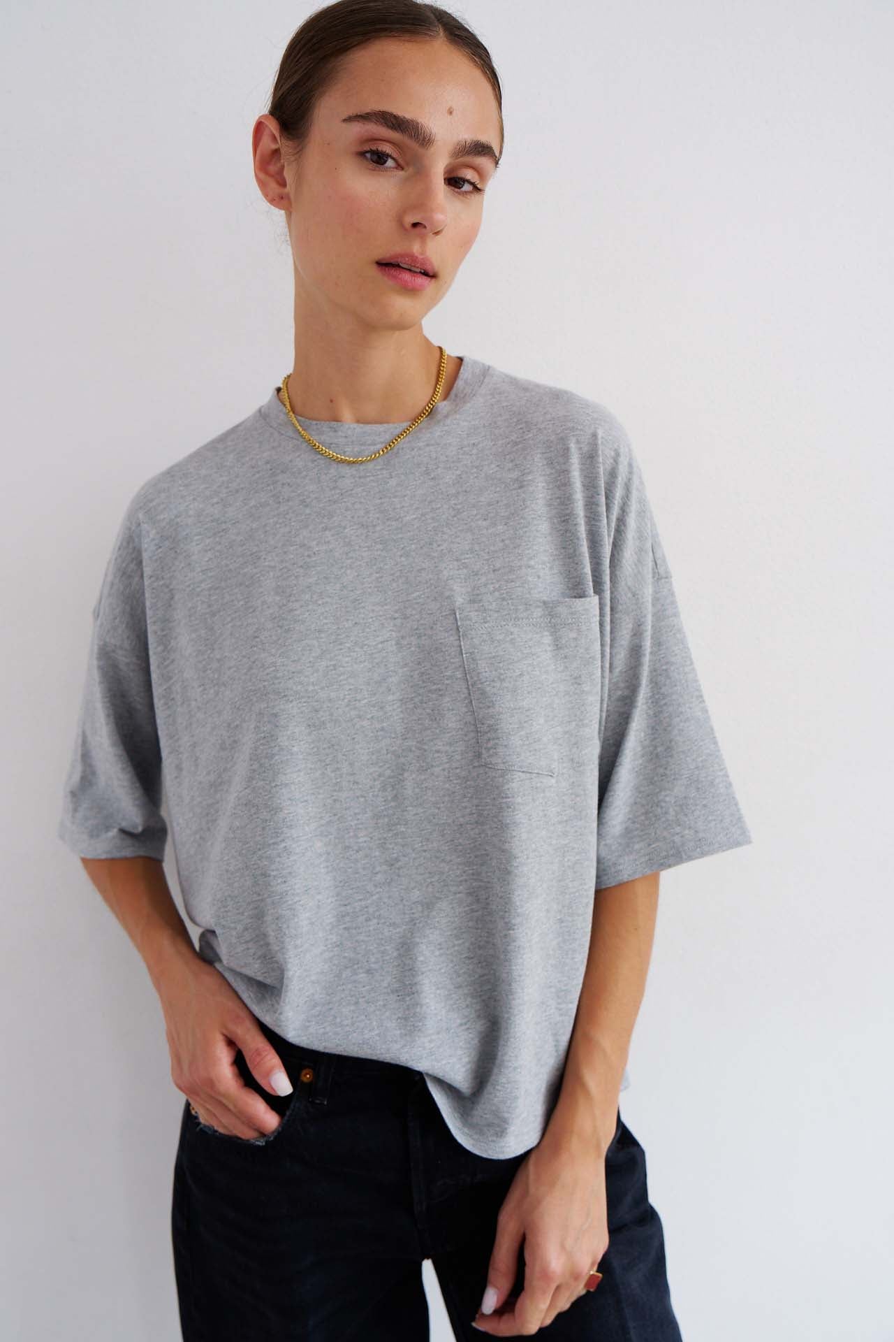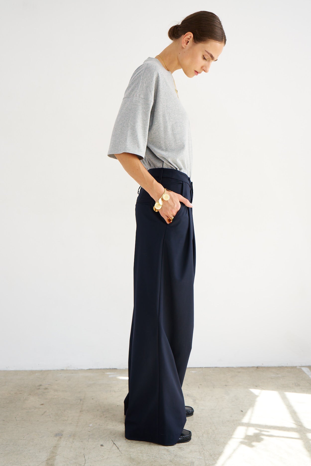 A crew neck tee with a dolman inspired loose-ish fit. Boyish inspiration with feminine drape creates modern, understated, casual appeal. A boxy fit creates beautiful shape when tucked and modern structure when undone. Cut in a soft multi-ply Japanese cotton modal jersey. Piece dyed for deep color saturation and preshrunk for fit continuity.