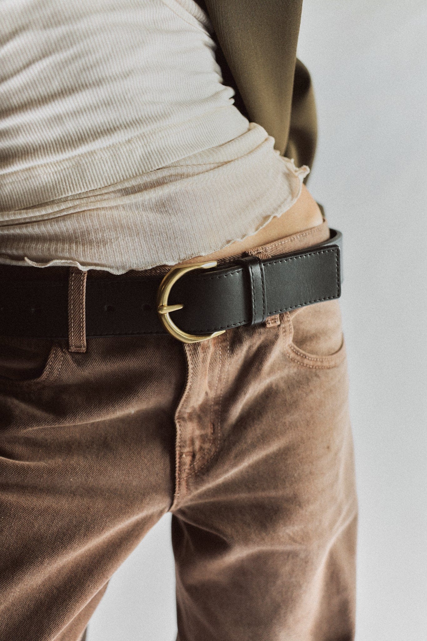 A thick leather belt that is designed for everyday wear. Handcrafted for exceptional durability and thoughtful practicality. An accessory made to reflect a lifestyle that prioritizes quality craftsmanship, hard-wearing functionality, minimalist, and timeless design.