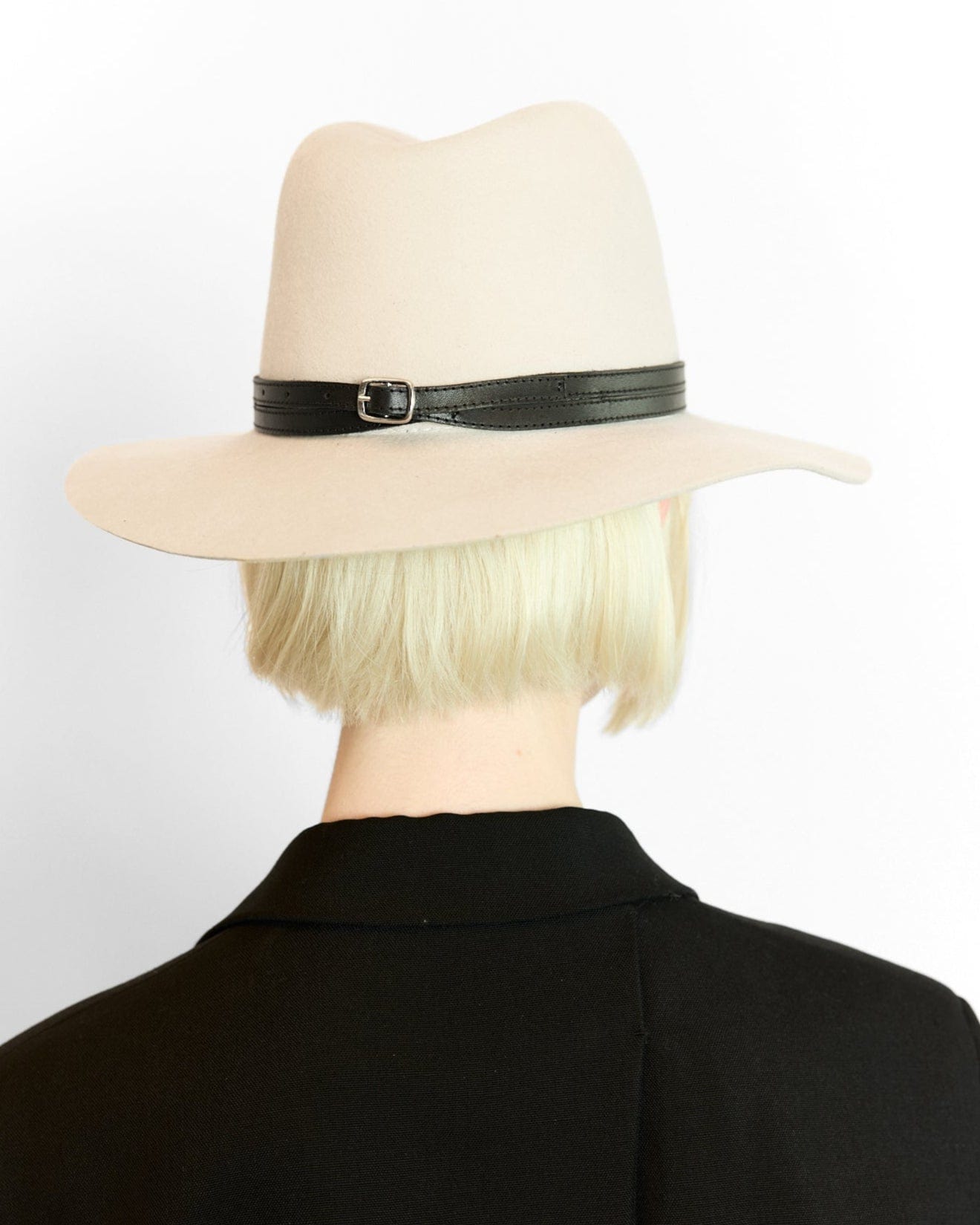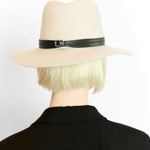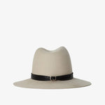 A soft-structured wool fedora featuring a double-stacked regenerative leather band and refined silver buckle closure. This 100% wool hat blends timeless design with sustainable craftsmanship for an effortlessly elevated look.