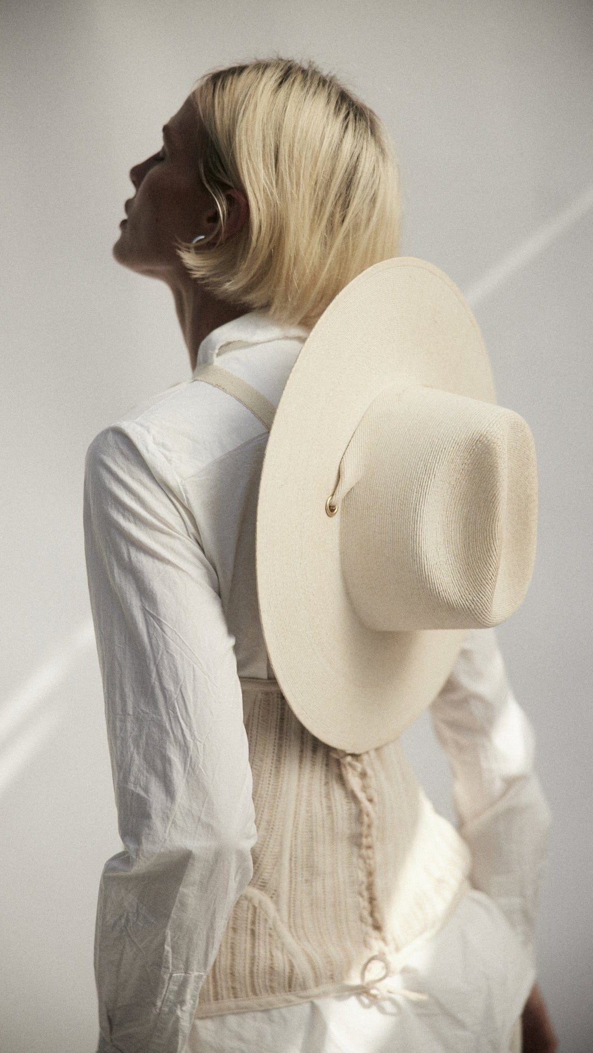 A structured hat artisanally crafted from palm straw. Palmer is equipped with detachable organic cotton ties and camel-toned regenerative leather aglets. The ultimate summer silhouette, its shape is ideal for long days in the sun.