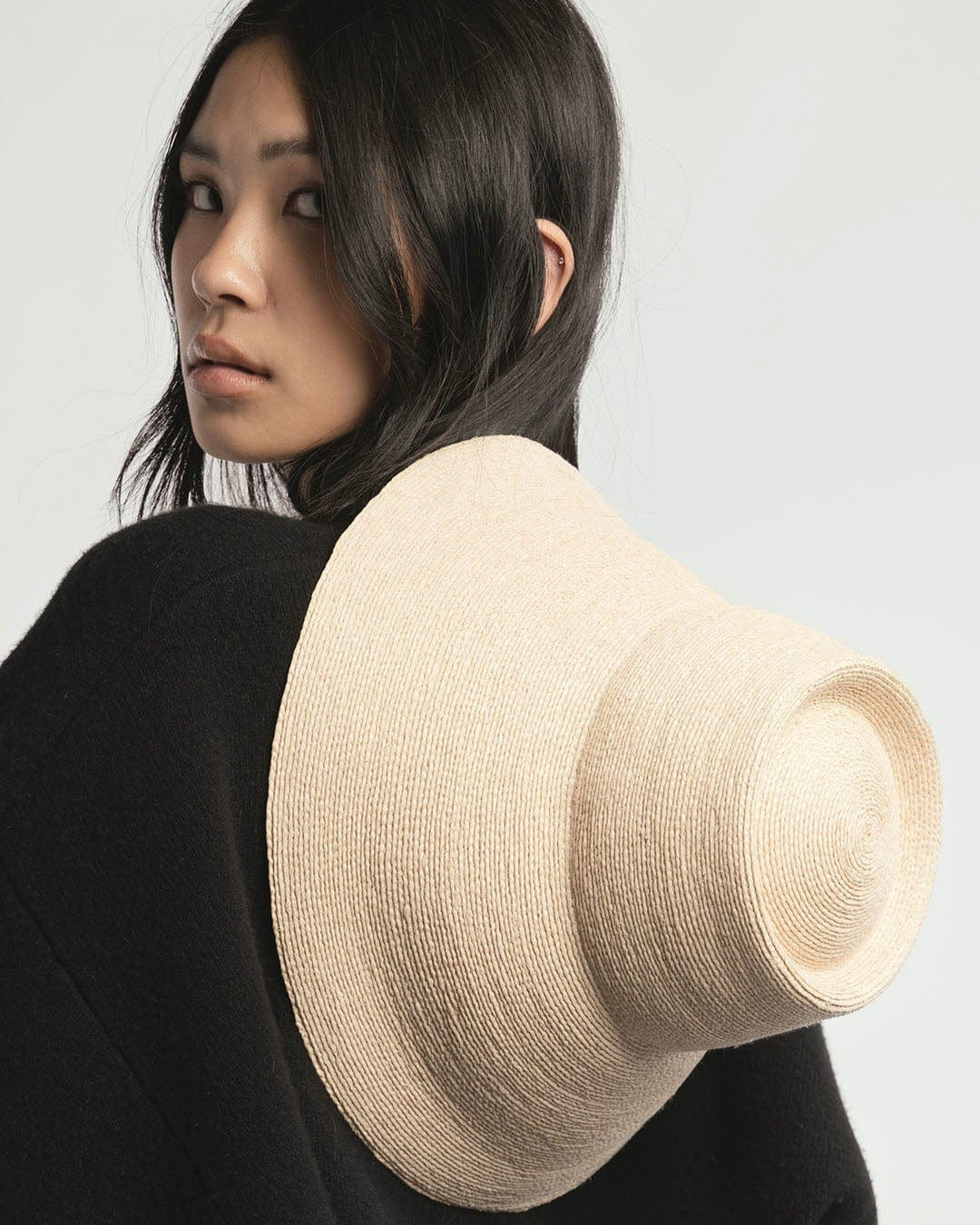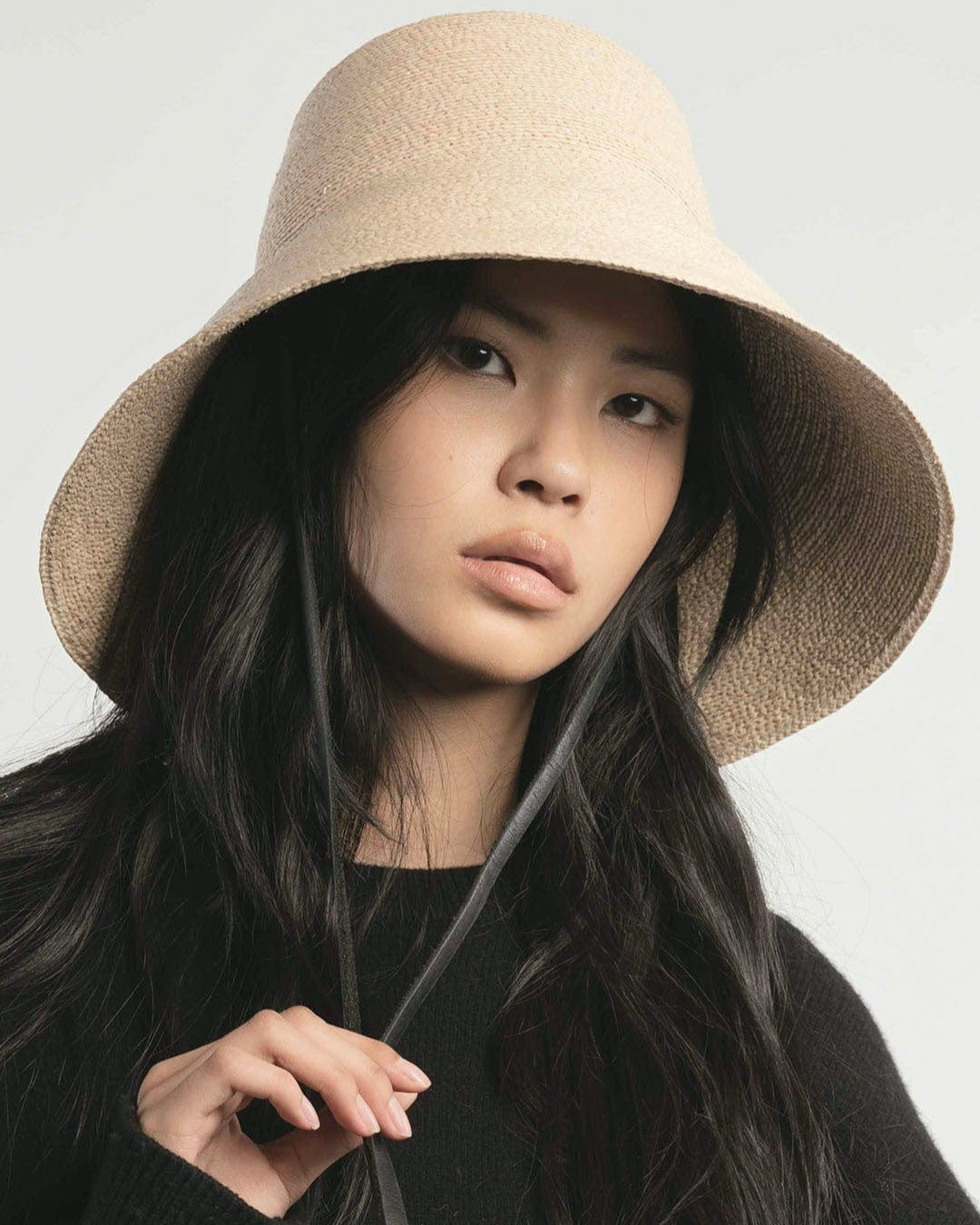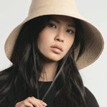 Handmade in Madagascar, the Suni Bucket is crafted from natural raffia straw, featuring our signature telescope crown and knotted black regenerative leather ties. This thoughtfully designed bucket hat combines form with functionality for sun-soaked days.