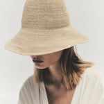 Teagan is made from straw harvested from the frond leaf in Madagascar and hand-crocheted into a light, durable fiber. Its malleable shape makes it ideal for packing with you on any journey. This raffia bucket hat provides structural design capability in the brim, allowing for any shape alterations.