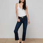The Aiden is a low-rise style with a slim, cropped leg. Cut in a rich dark wash with contrast stitching, it’s the perfect pair for showing off statement heels or sleek ankle boots.
