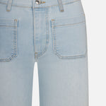 Tailored, with a twist. The Anchor Pant features front patch pockets, a cropped inseam, and a subtle wide leg. The powder blue wash adds a summer energy to this super stretch silhouette.