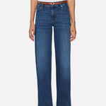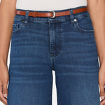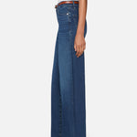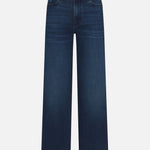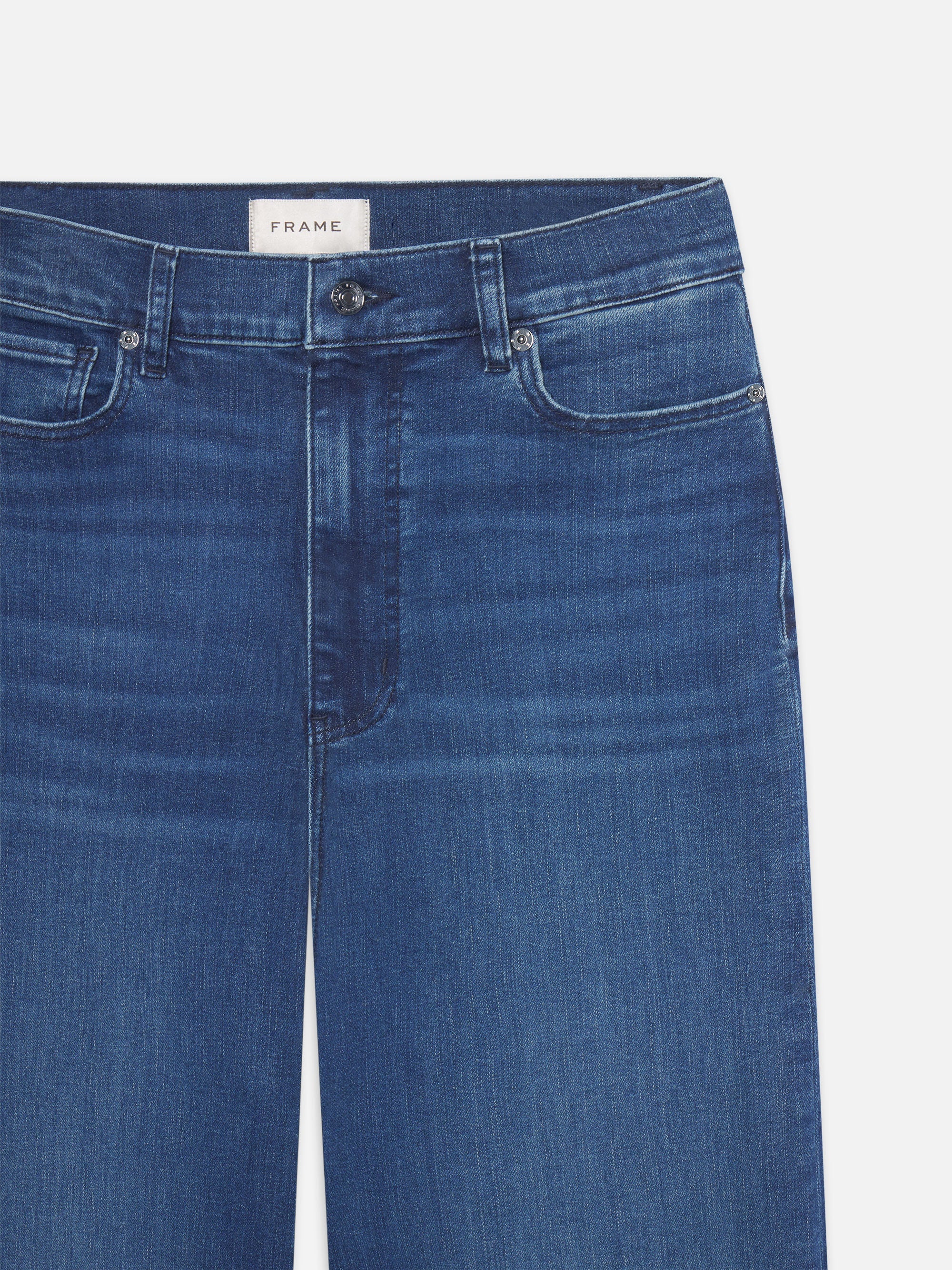 Our bestselling fit, now tall girl approved. Le Slim Palazzo Long offers an extended 34" inseam, the same flattering high rise, fitted hip, and subtle wide-leg flare. The dark blue jean is crafted from a sustainable, super-stretch cotton blend for soft and comfortable wear.
