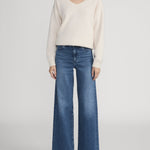 This bestselling silhouette is designed with a flattering high-rise waist, fitted hip, and subtle wide-leg flare that hits at the floor. Crafted from super-stretch denim for effortless all-day wear.