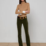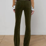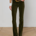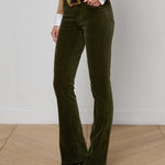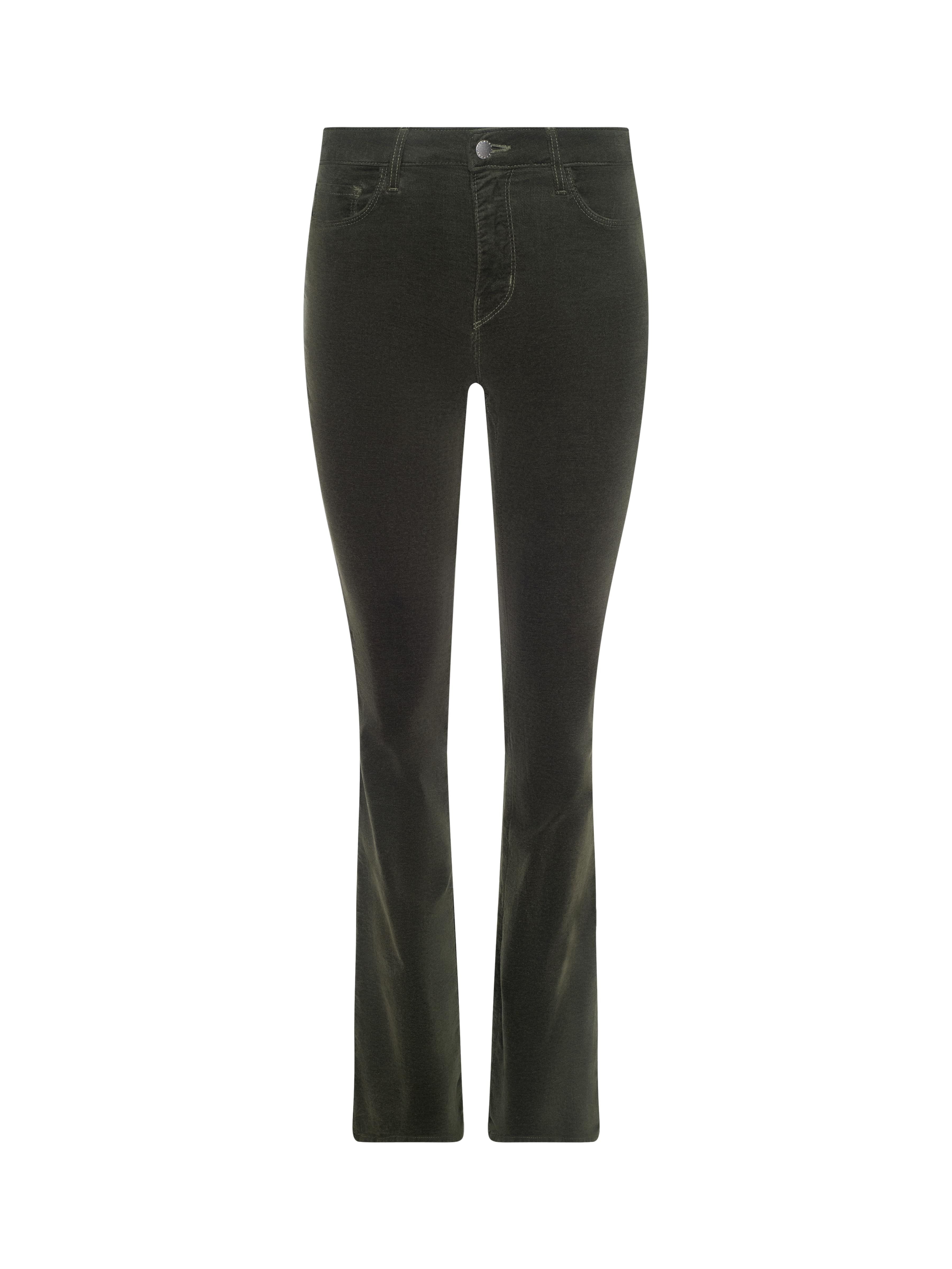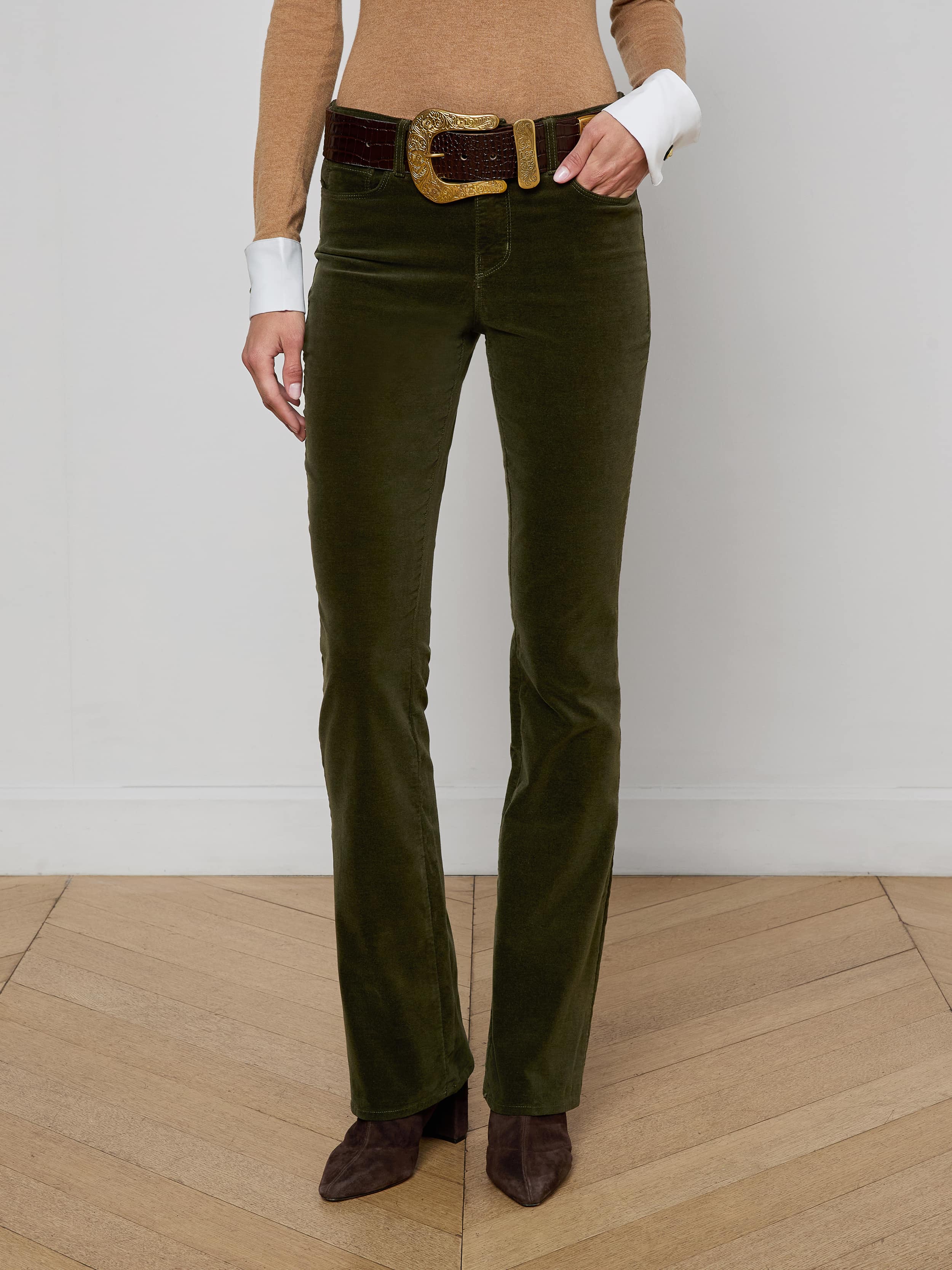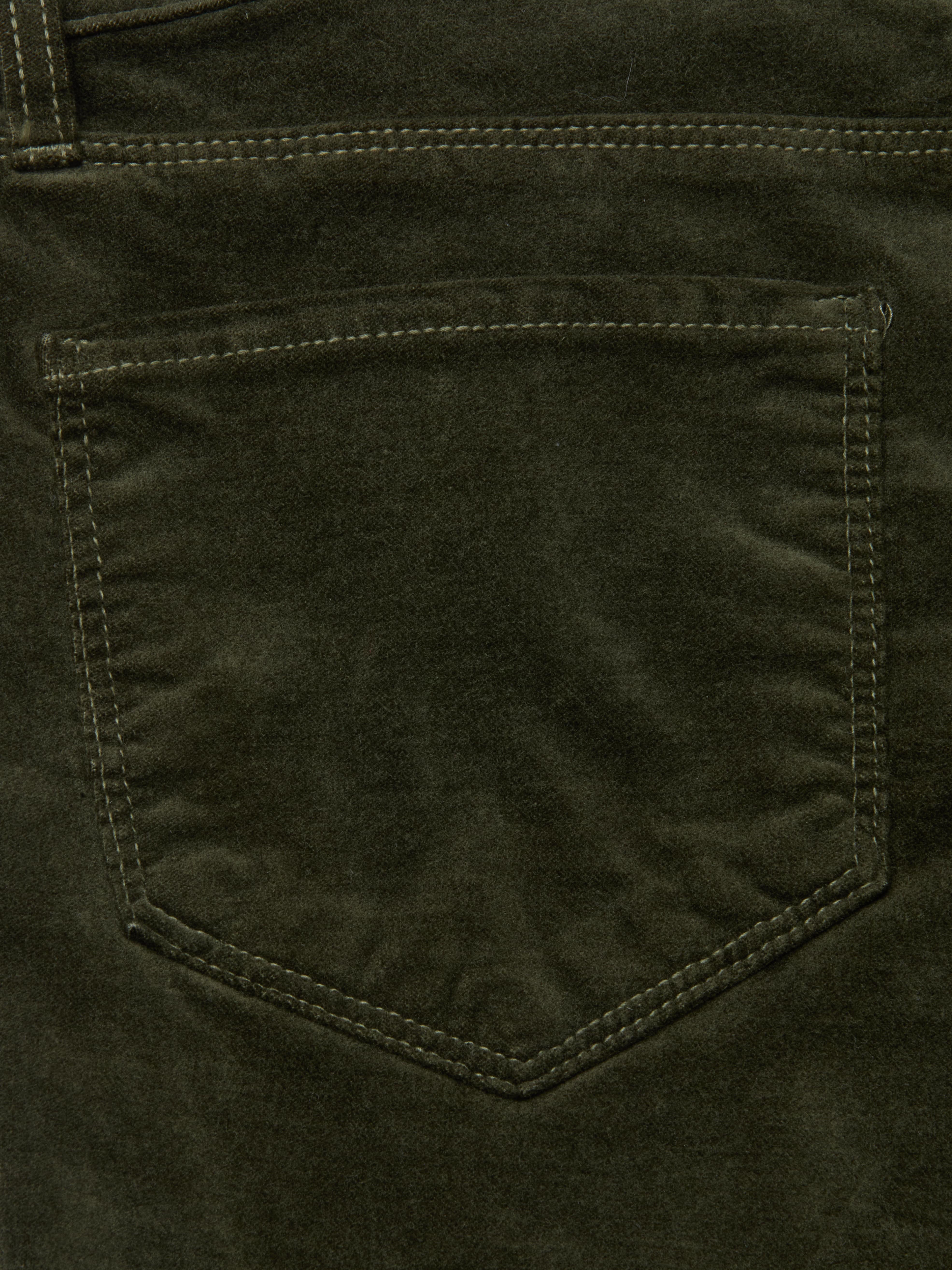 A classic fit in a modern fabrication. The Stevie features a clean straight leg fit crafted from luxurious stretch velvet. Now in olive green.