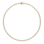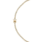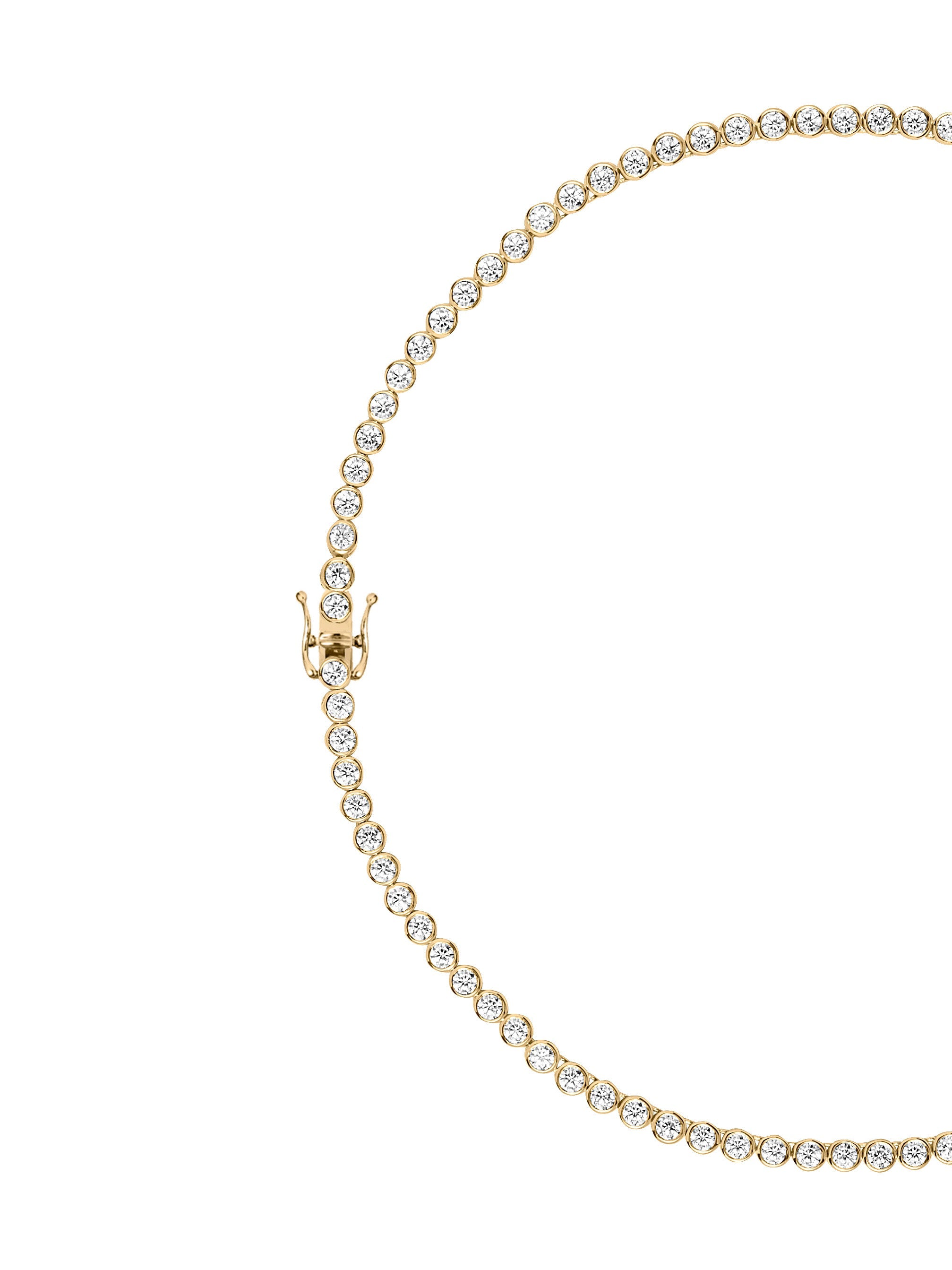 Made to order in 14k yellow or white gold. The James Bezel Rivière Necklace showcases precision-cut, 3MM lab-grown diamonds, each individually encased in a classic bezel setting that elegantly frames the stones. This tennis necklace is secured with a box clasp, reinforced by double safety hooks for added security.