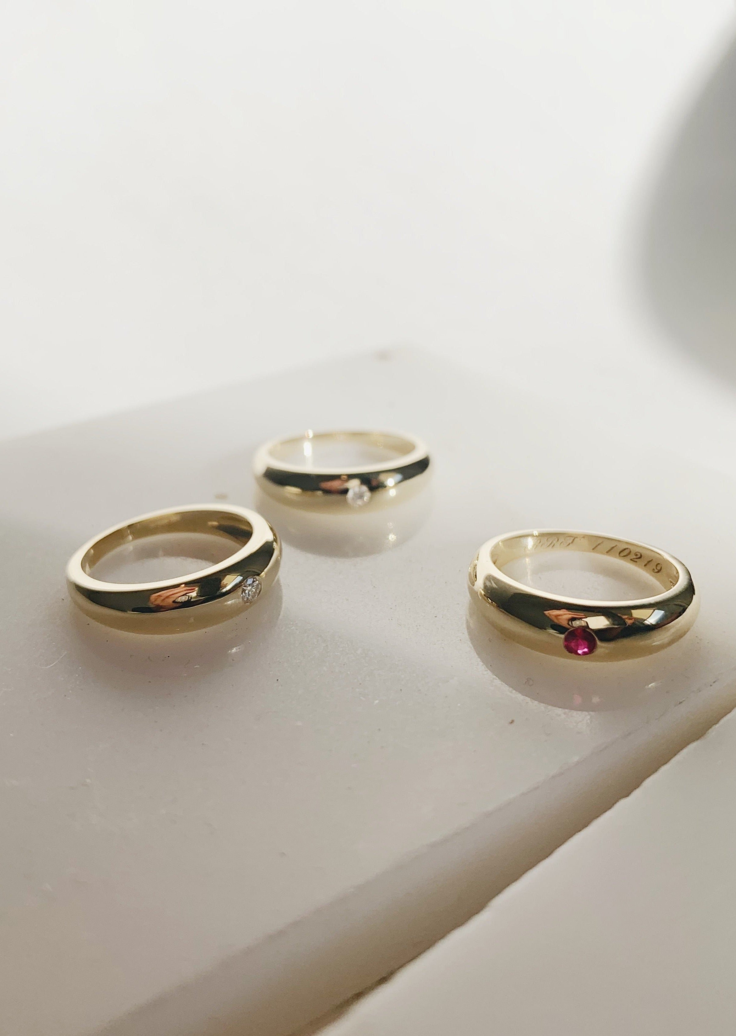 Handcrafted in LA, this timeless piece is adorned with your birthstone for a personalized addition to your ring stack. Our stones are 100% natural, meaning they're not dyed or heat treated and no stone is exactly alike.