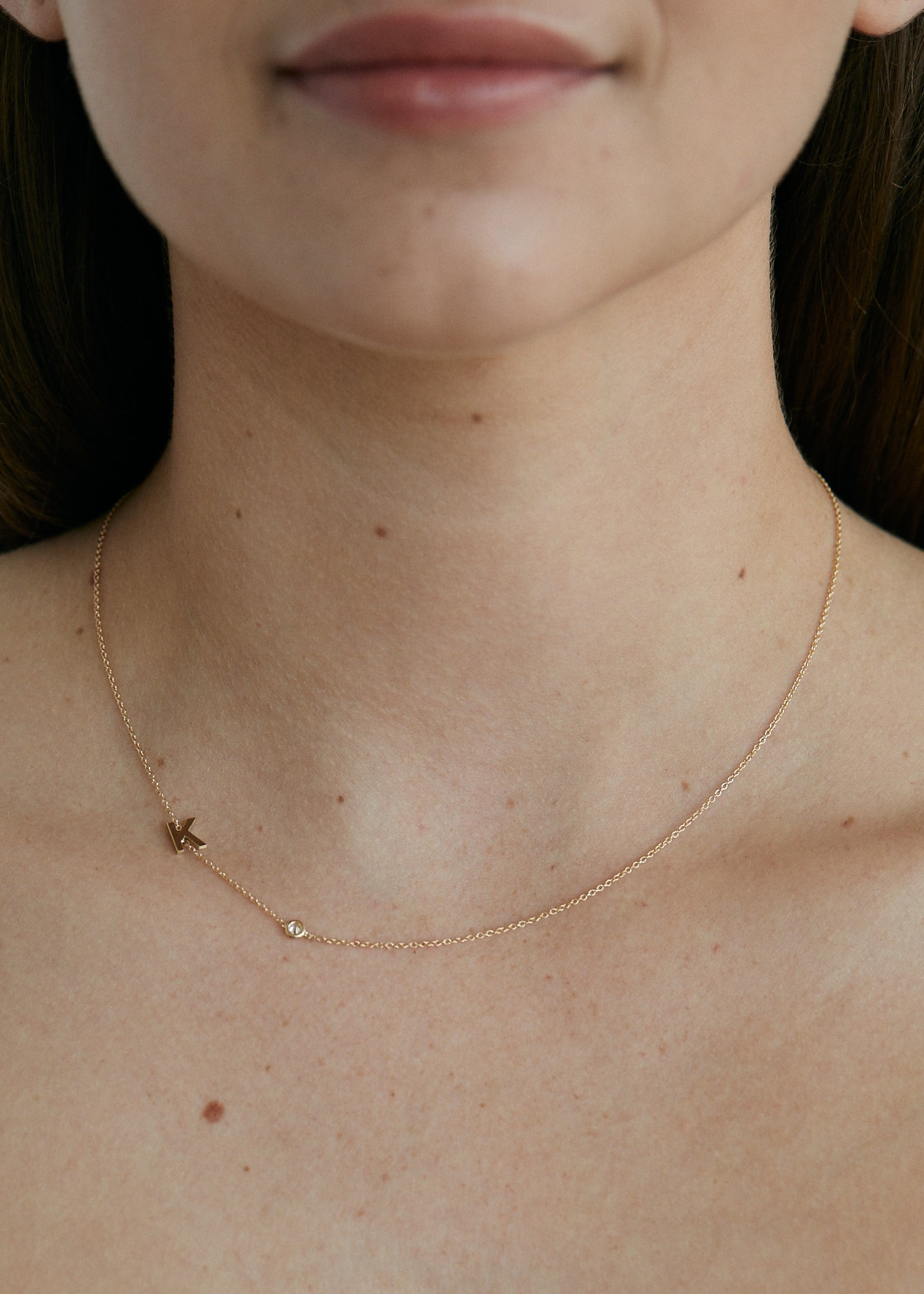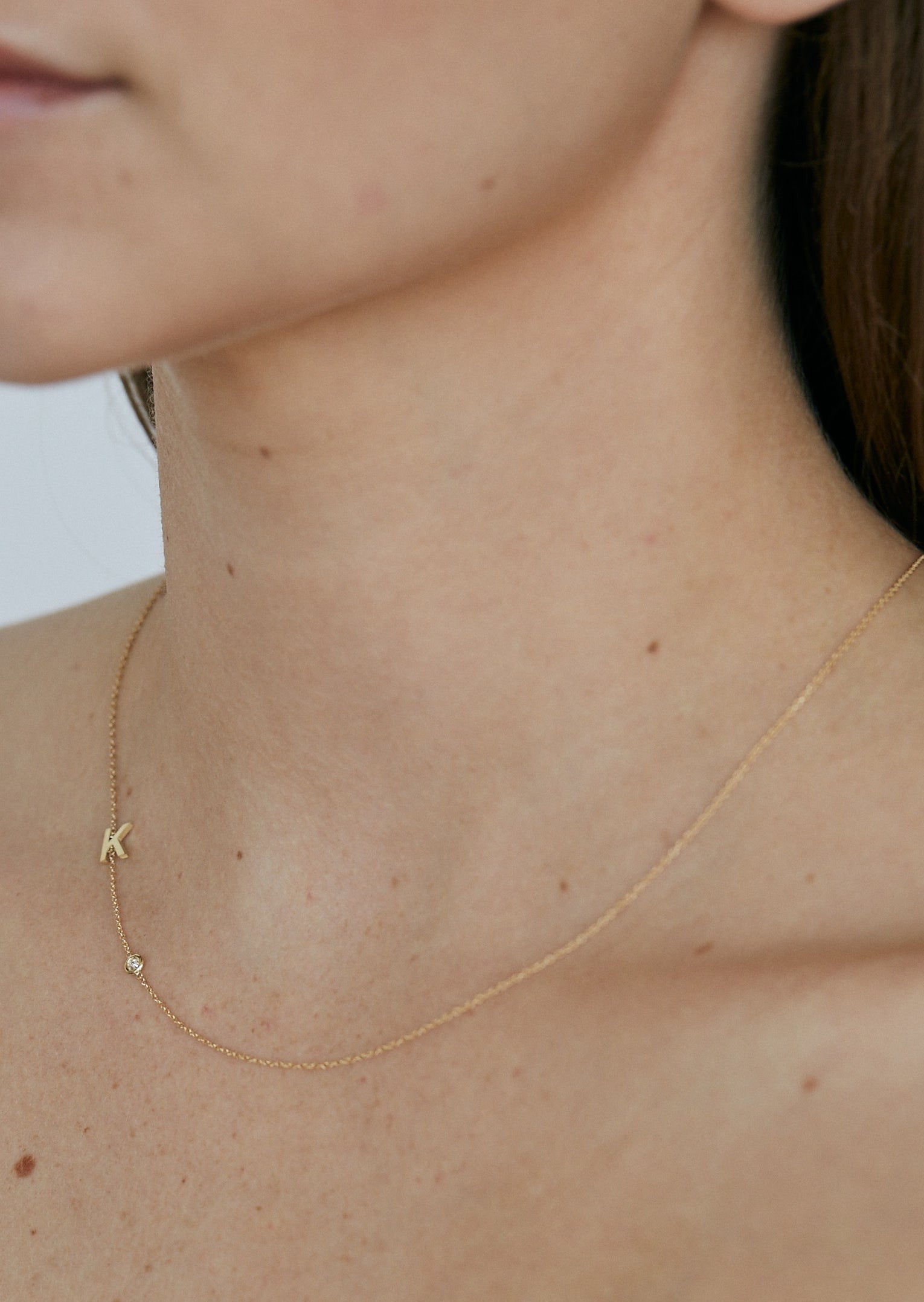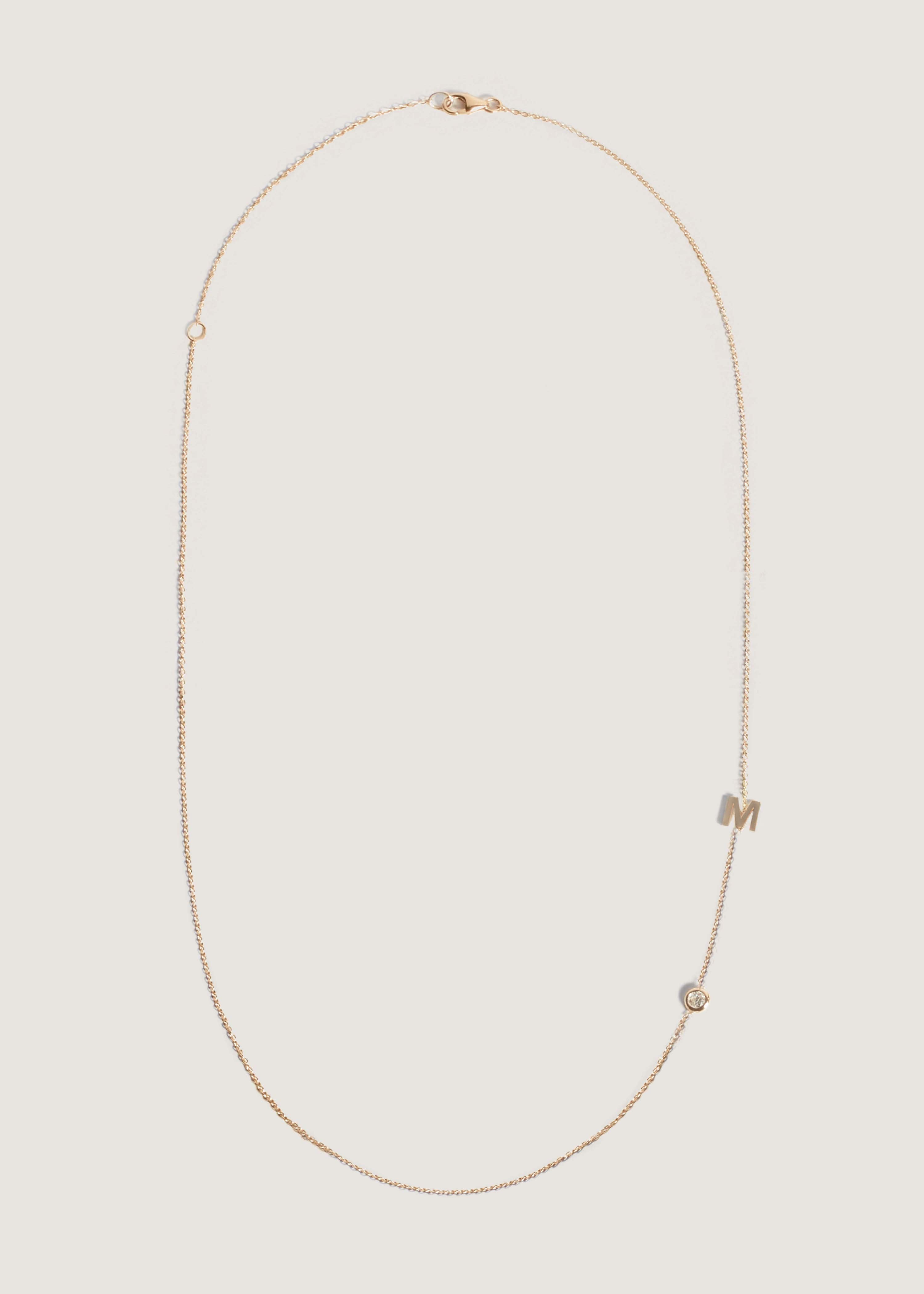 Love letters have been capturing hearts for centuries. Our initial necklaces are modern love letters. This piece features a round bezel set natural diamond and capital letter of your choice—set on our signature Micro Rolo Link Chain Necklace.