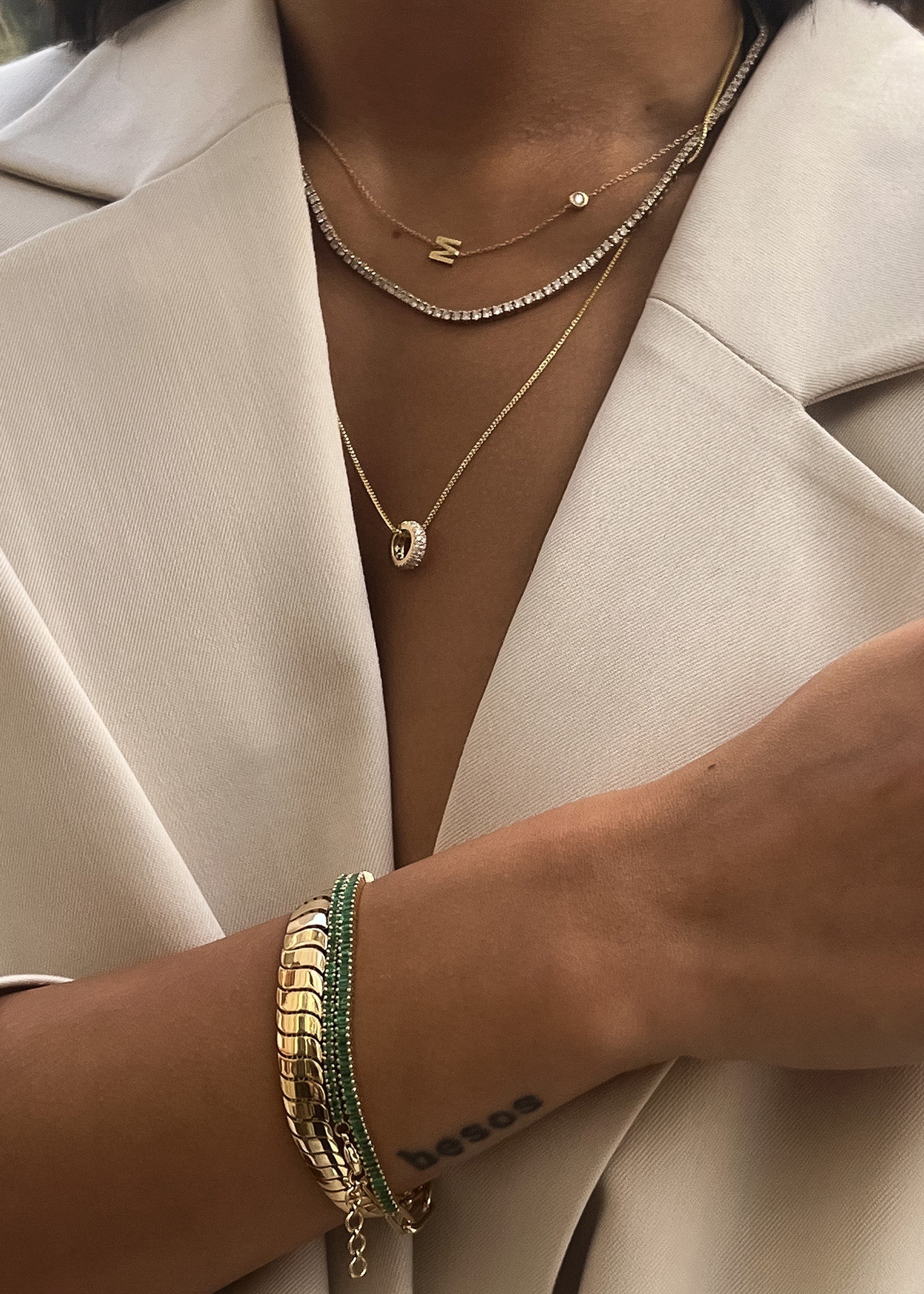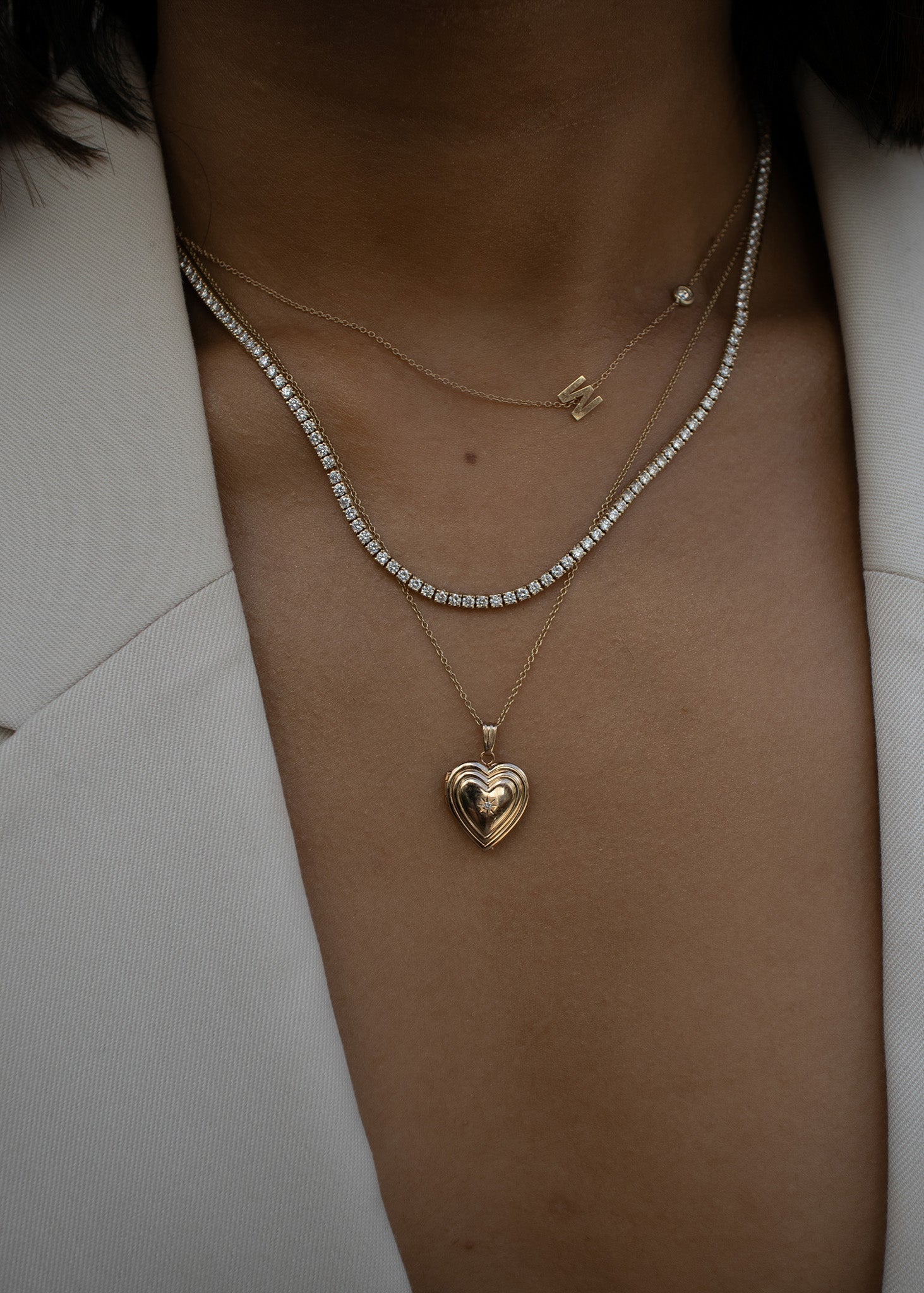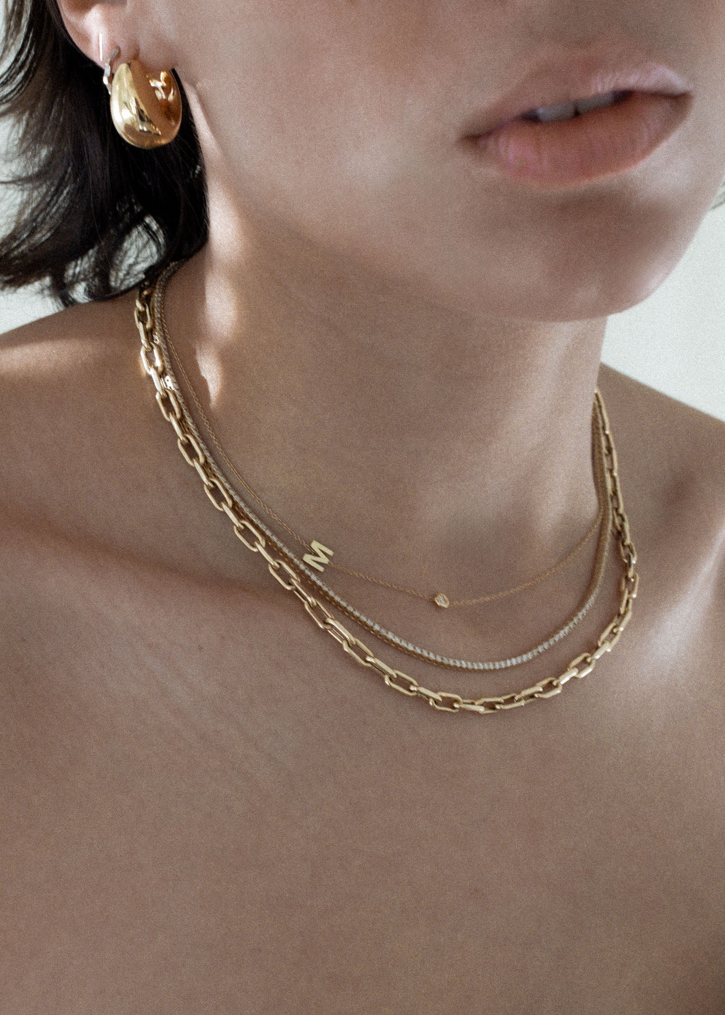 Love letters have been capturing hearts for centuries. Our initial necklaces are modern love letters. This piece features a round bezel set natural diamond and capital letter of your choice—set on our signature Micro Rolo Link Chain Necklace.