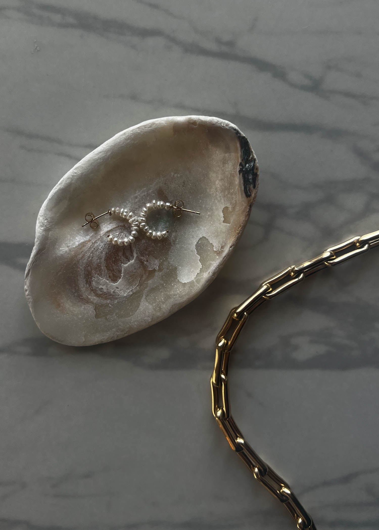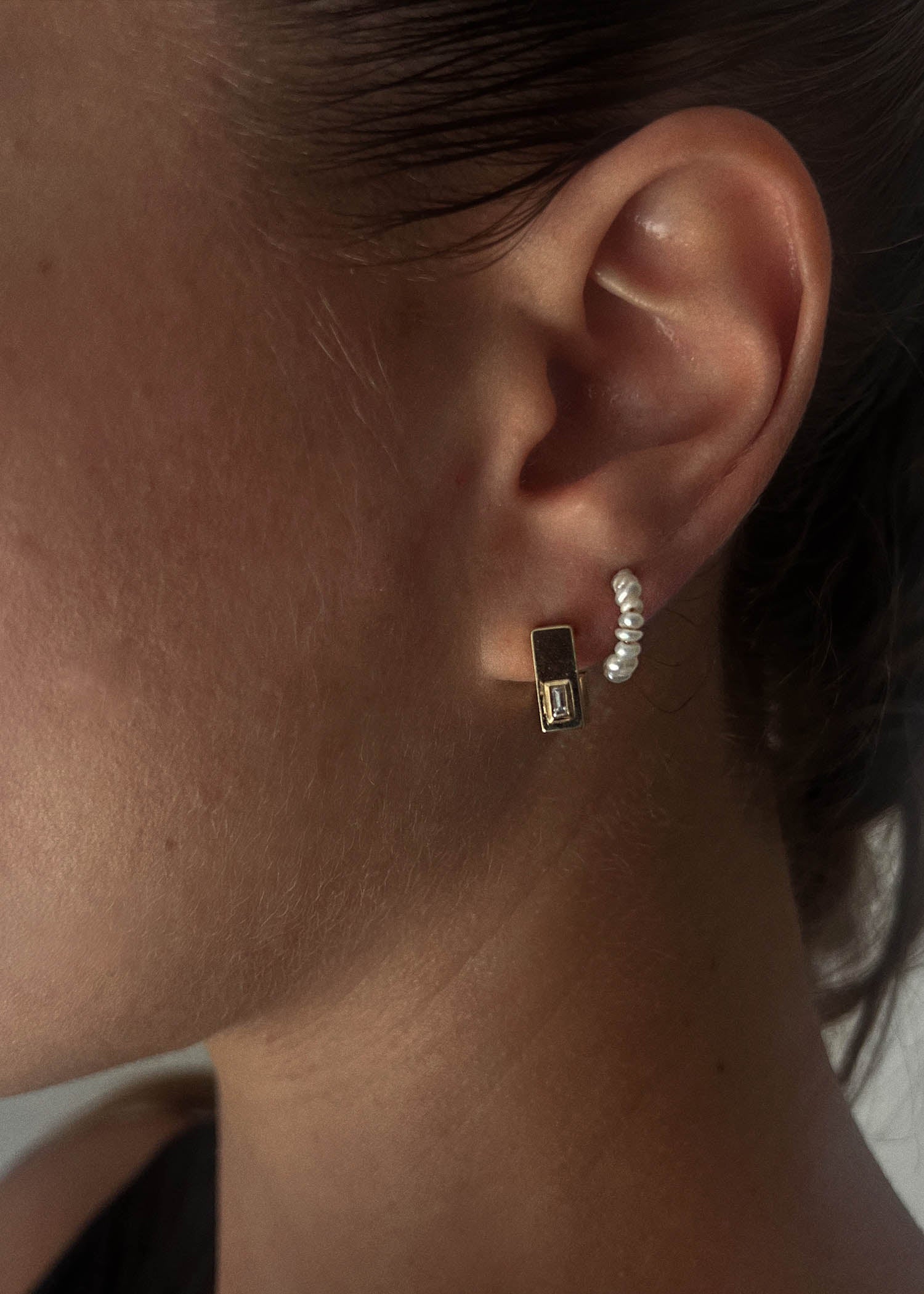 Pearl Care: Pearls are organic gemstones, and are vulnerable to acid and extreme humidity, and are not meant to be worn in the shower. To extend the life of your piece, we recommend removing while swimming or using harsh products.