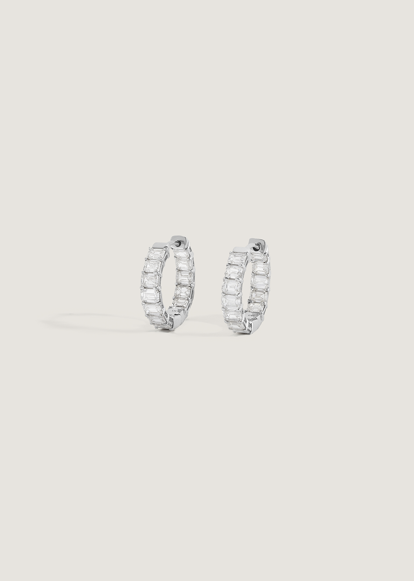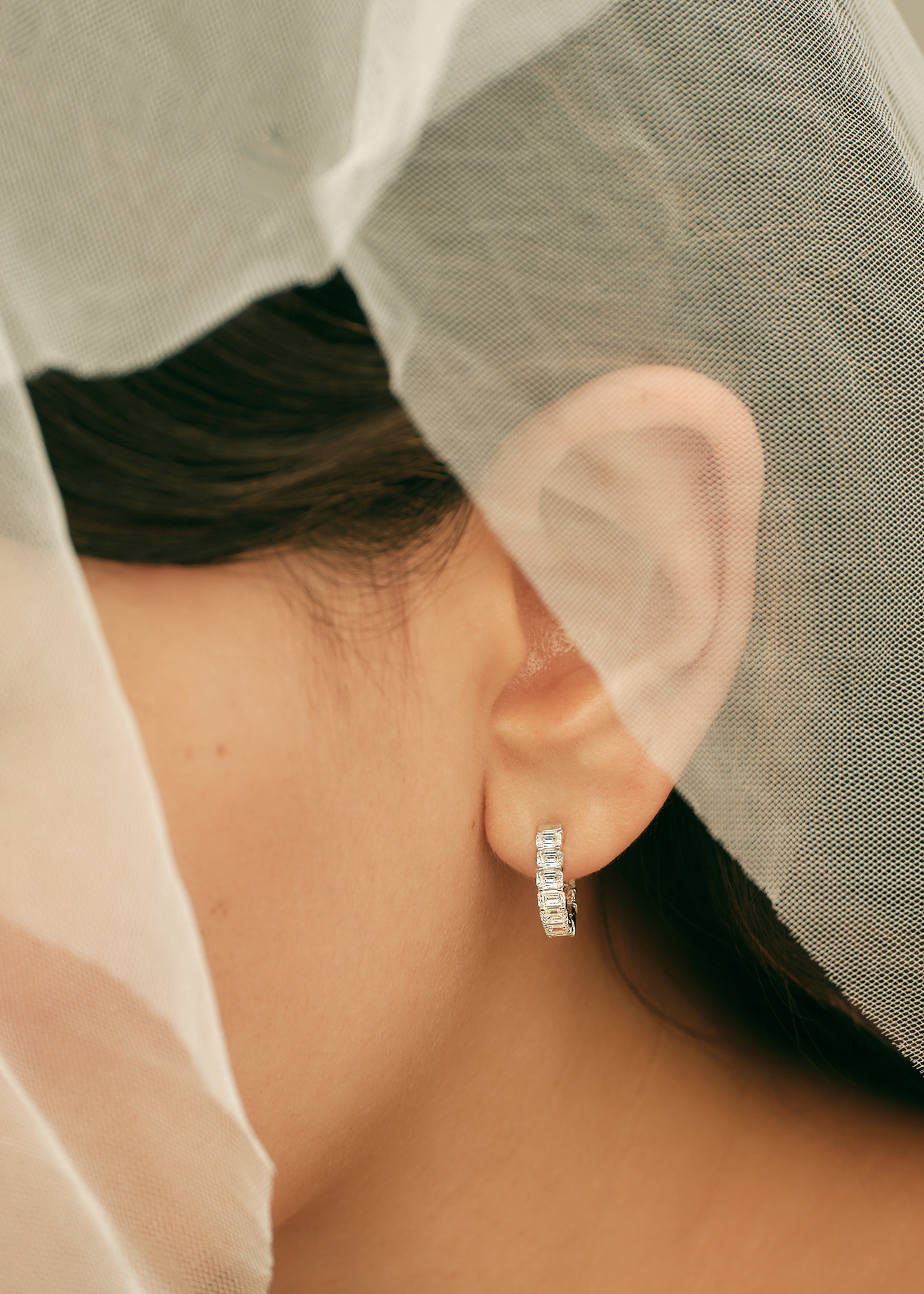A thoughtful twist on classic brilliance. The Brynn Hoops feature baguette diamonds that seamlessly shift from outer to inner lining, ensuring every stone catches the light from every angle. Designed for effortless drama, they embody boldness with meticulous craftsmanship—a statement meant to be seen and felt.