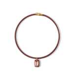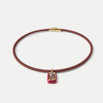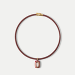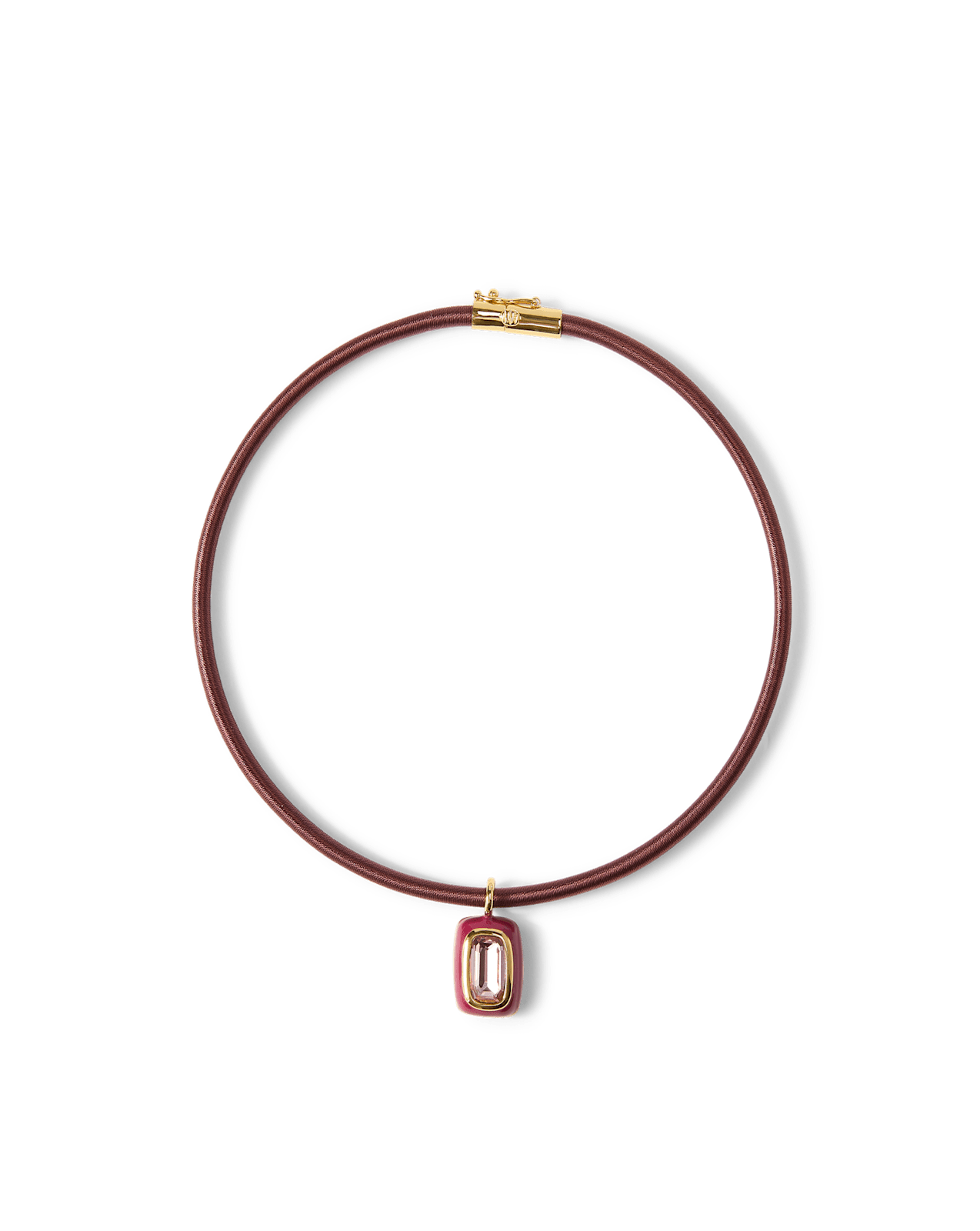 An effortless necklace to elevate the everyday. Falling just below the collarbone, it’s crafted from rounded burgundy cord and features a glass rectangular pendant with white enamel and 12-karat gold-plated brass accents—fastening securely with a barrel clasp, for ease. Equal parts polished and cool, it boasts a wear-everywhere versatility—style with a simple V-neck, or layer over a turtleneck.