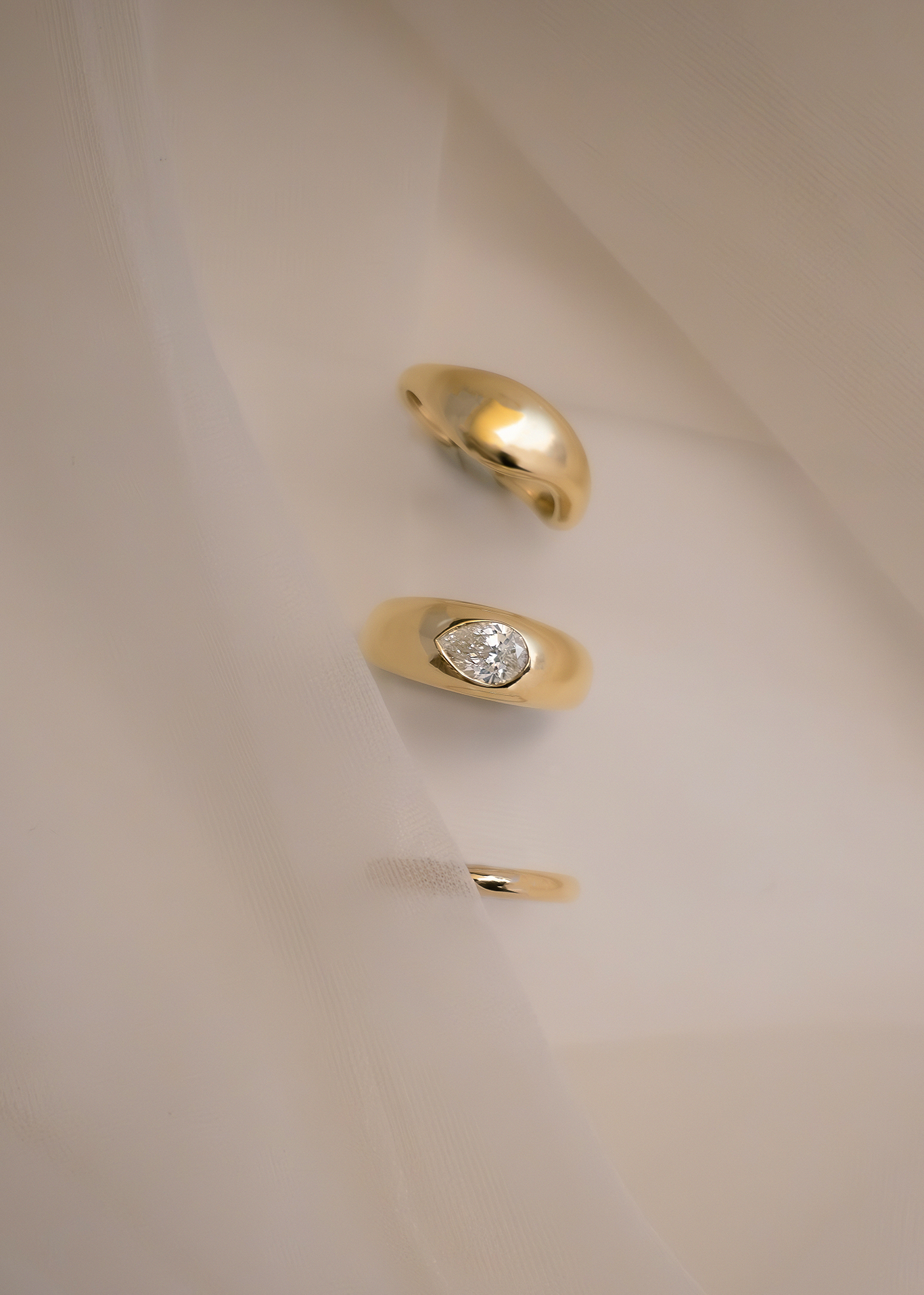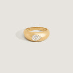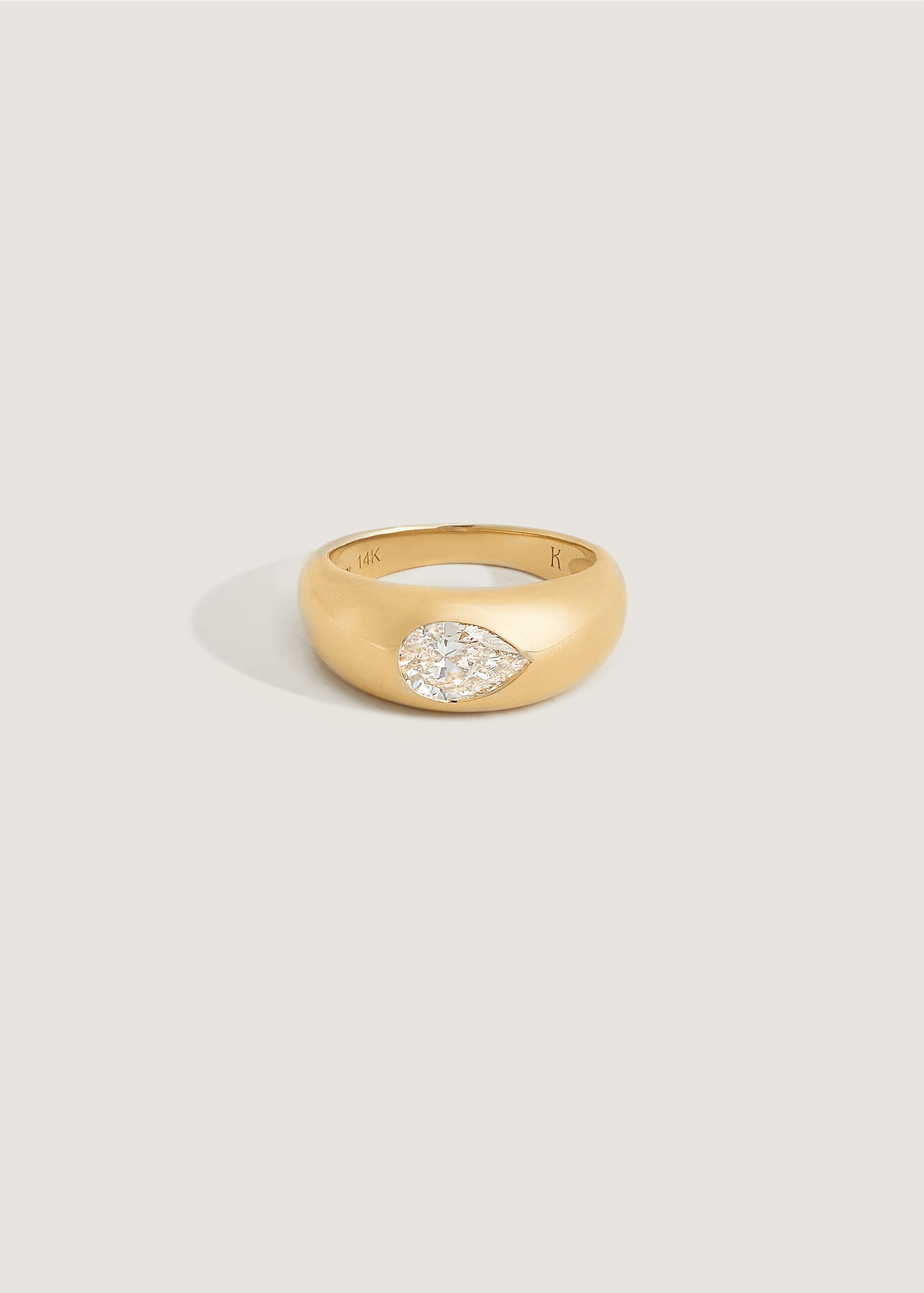 Bold elegance, softened by intention. The Carmen Dome Pear Diamond Ring features a sculptural gold silhouette, crowned with a singular pear-shaped diamond. Designed to make a statement without saying a word, its polished curves reflect light—and confidence—with every movement. A modern heirloom made to ground your collection in strength, beauty, and permanence. Drawn to deeper color? Discover the Carmen Ruby Ring for a vibrant twist on this signature design.