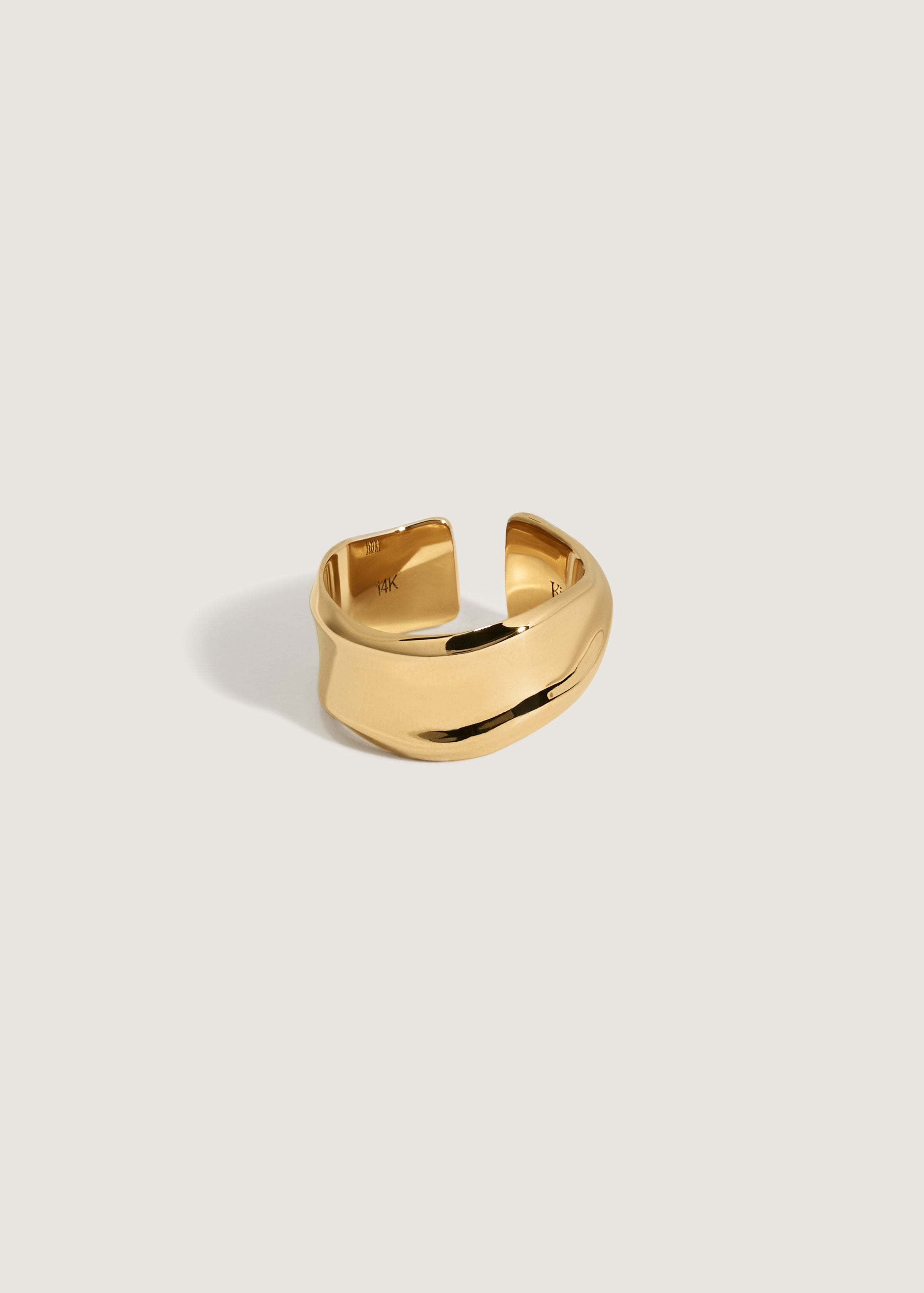 Our statement ear cuff in 14k solid gold takes the shape of sculptural silhouettes found in nature. Transforming from an ear cuff to a ring and back again, it embraces versatility and creative expression.
