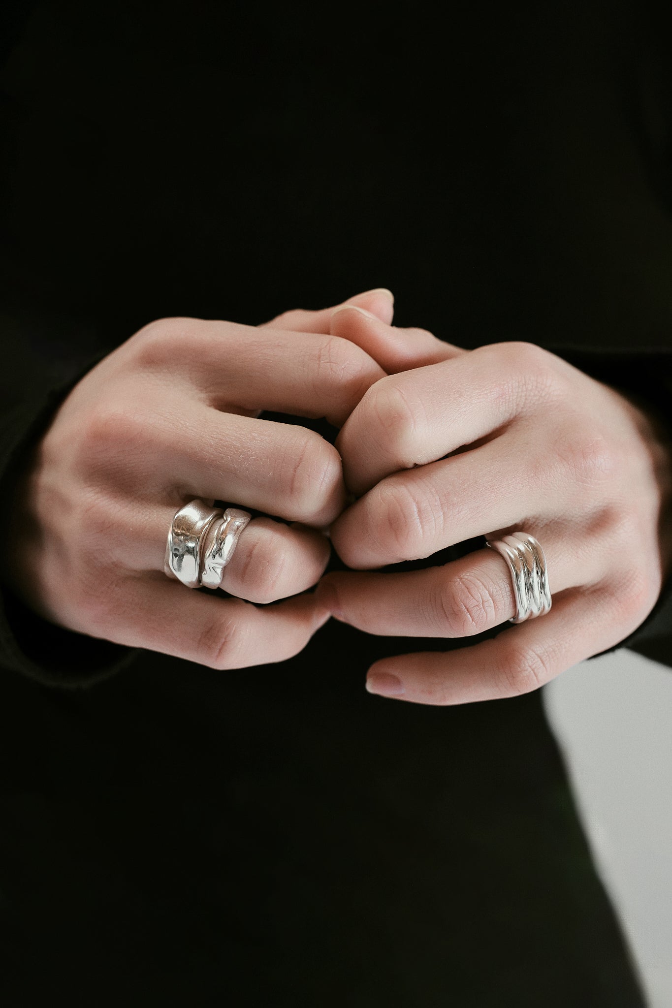 Our statement ear cuff in sterling silver takes the shape of sculptural silhouettes found in nature. Transforming from an ear cuff to a ring and back again, it embraces versatility and creative expression.