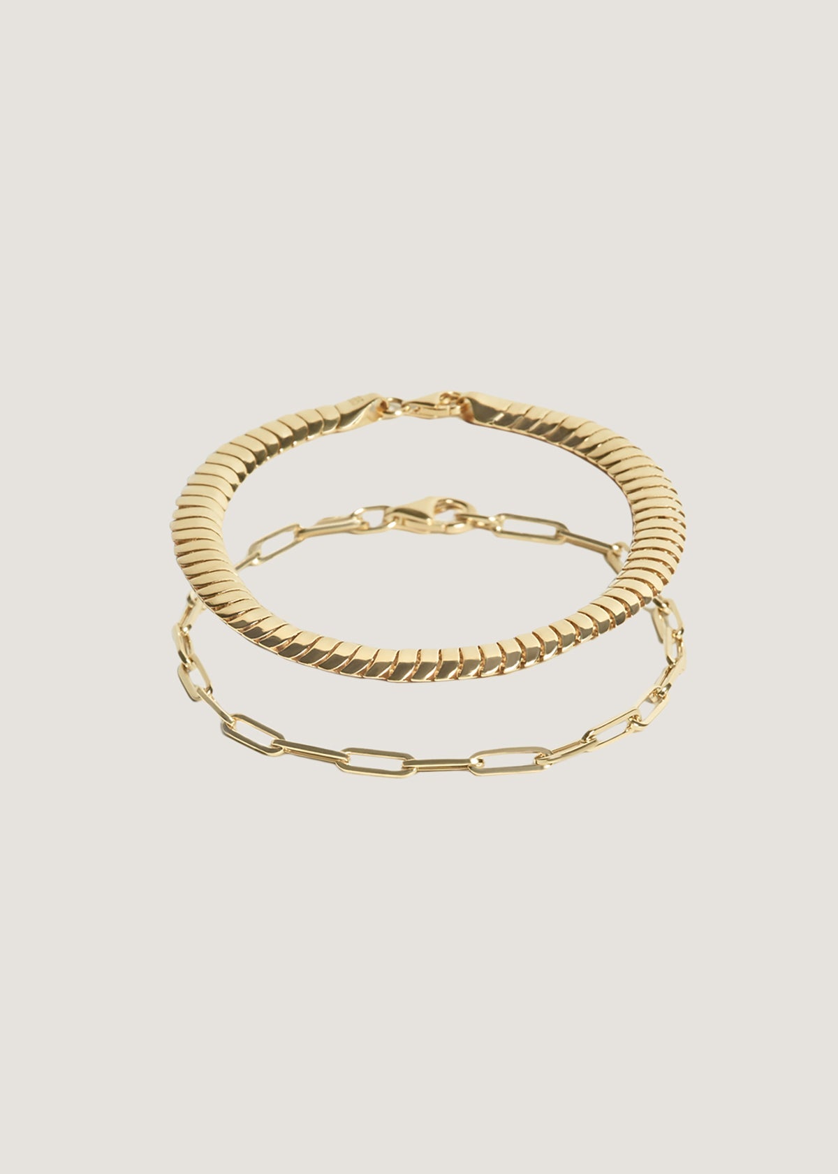 Includes one Cobra Chain Bracelet and one Paperclip Link Chain Bracelet.