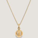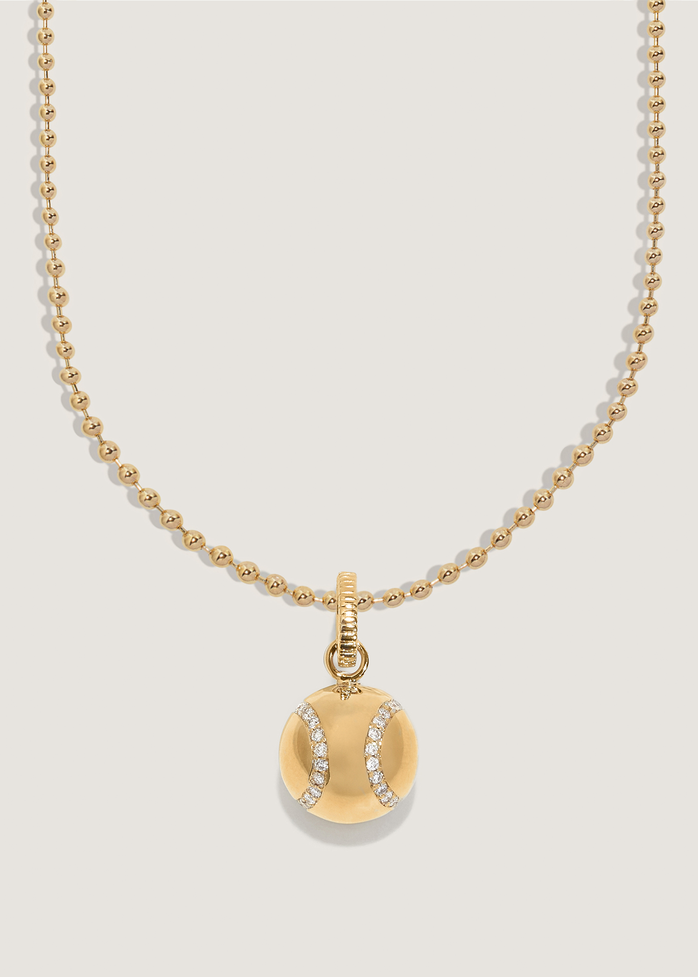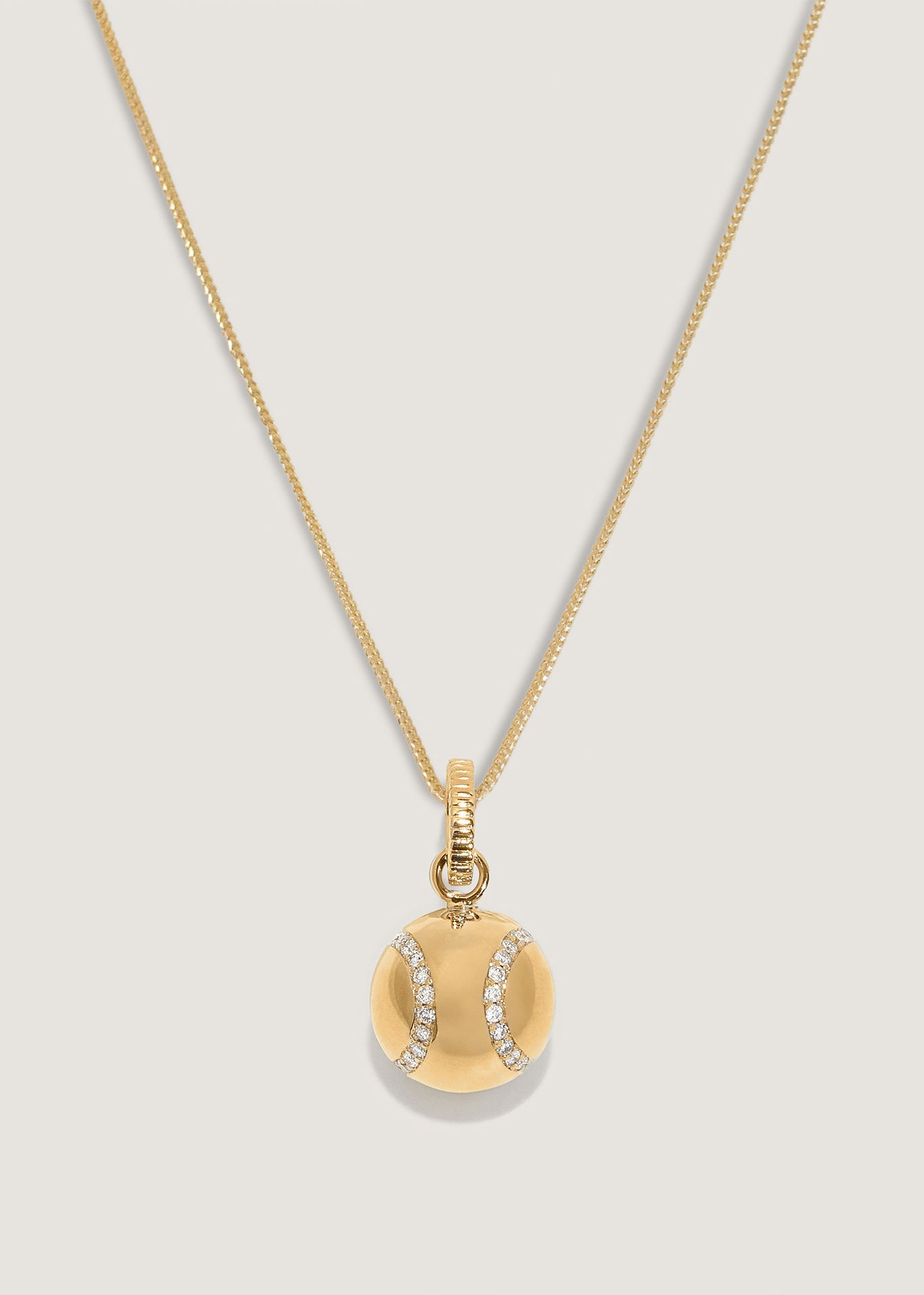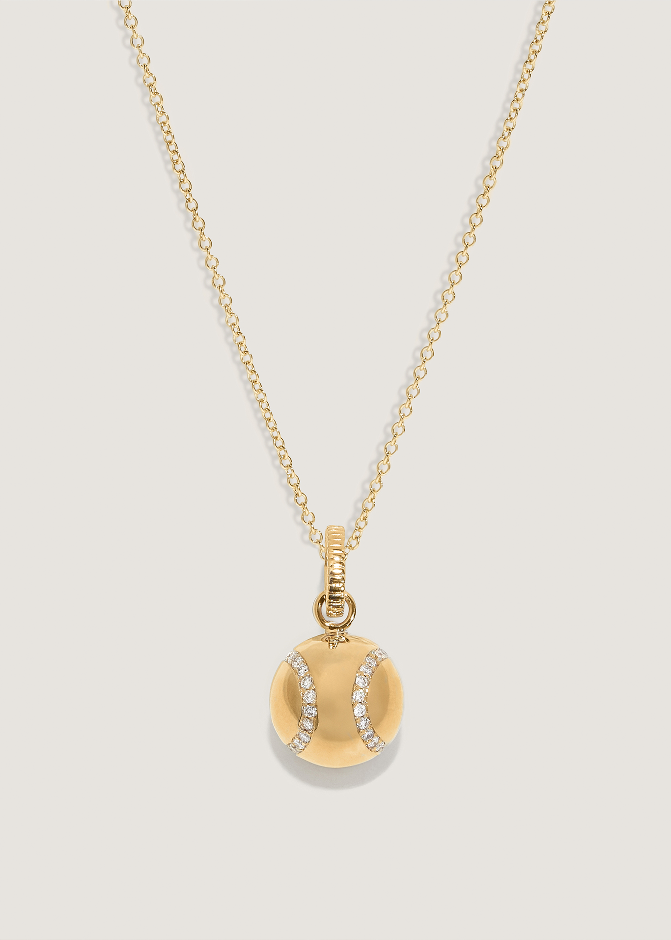 Eye on the prize. Our courtside-ready tennis ball pendant is crafted in 14k solid yellow gold with sparkling pavé diamond seams. A whimsical yet timeless charm with a vintage aesthetic. Designed to layer on your favorite chain and pass down to those who share your passion.