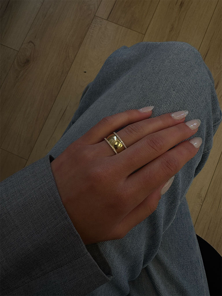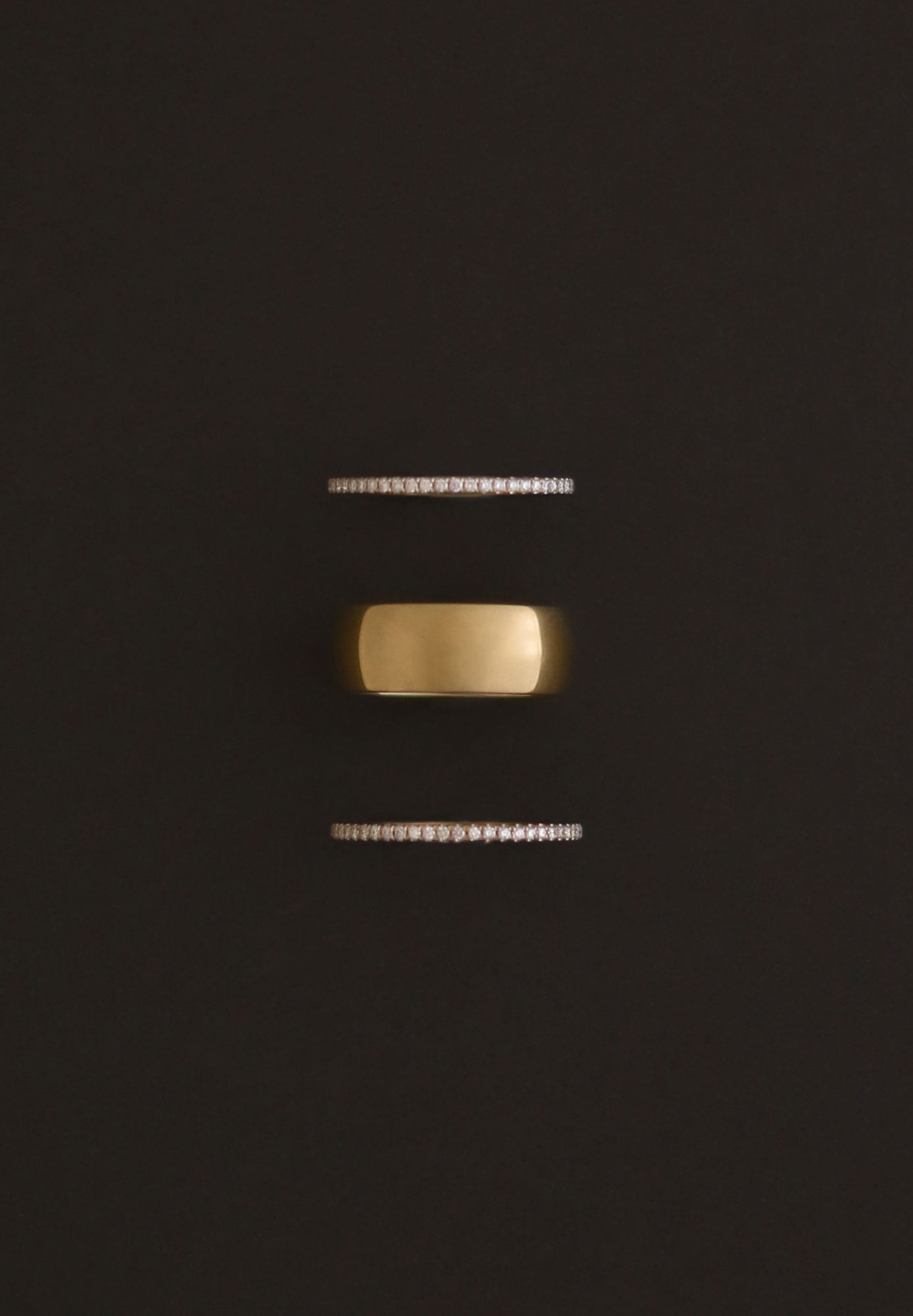 The Dahlia Ring features 0.28ctw diamonds set in 14k solid gold. Whether you're celebrating a commitment to a partner or another milestone, this is a timeless piece to be passed on for generations. This piece features two of our best selling Dahlia Pavé Rings in 1.2mm—wear them stacked or separately.
