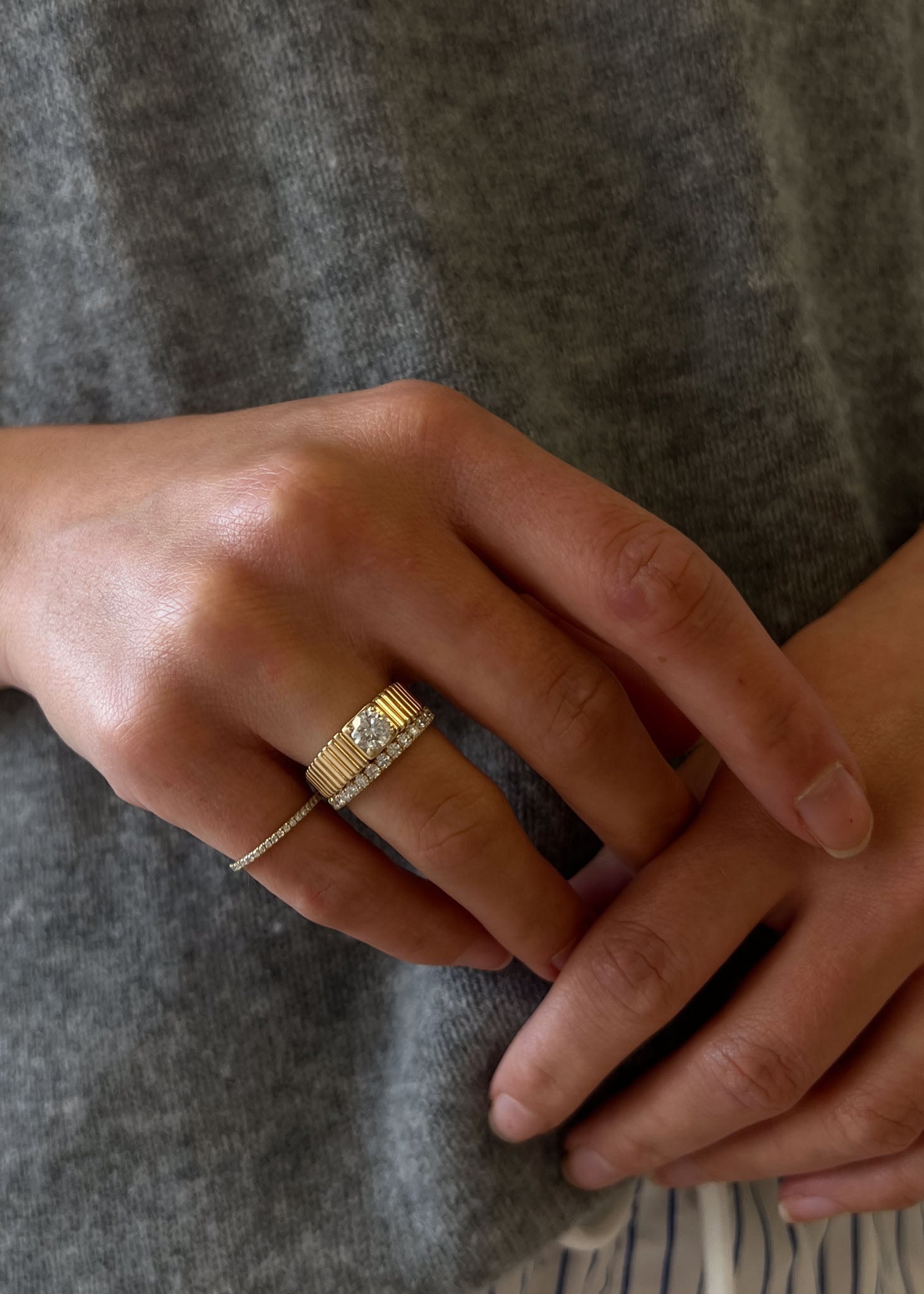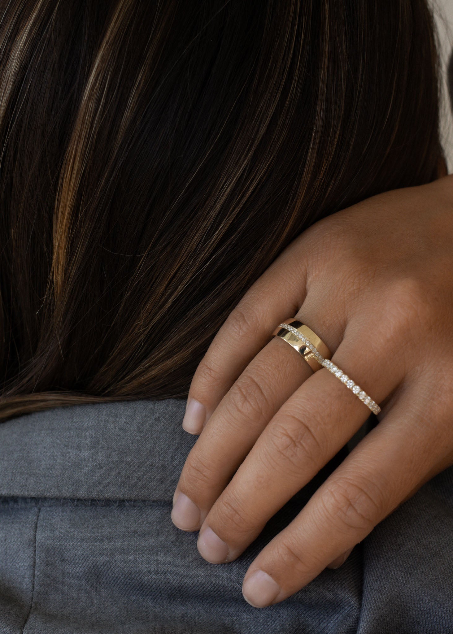 The 2.2mm Dahlia is a stunning piece for everyday ring stacking—or the perfect wedding band to complement your engagement ring. This piece will remain a classic for years to come, and is designed to be passed down for generations.