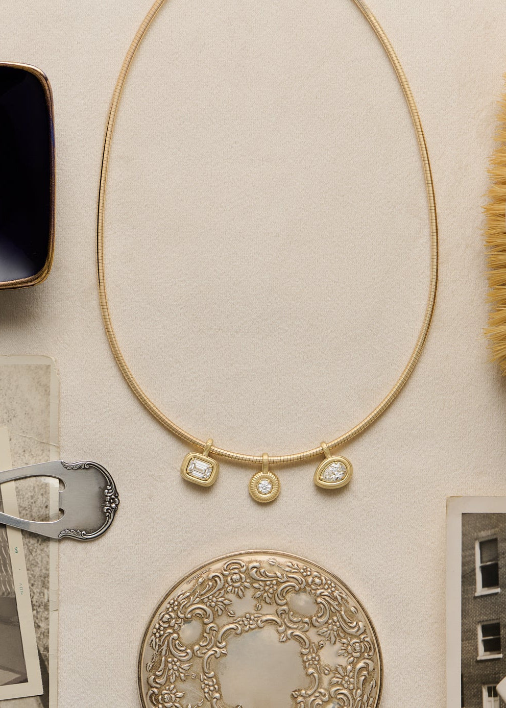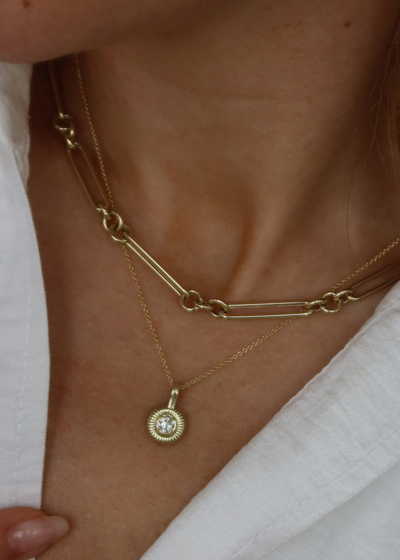 Kinn - Delphine Ribbed Pendant Diamond Necklace