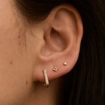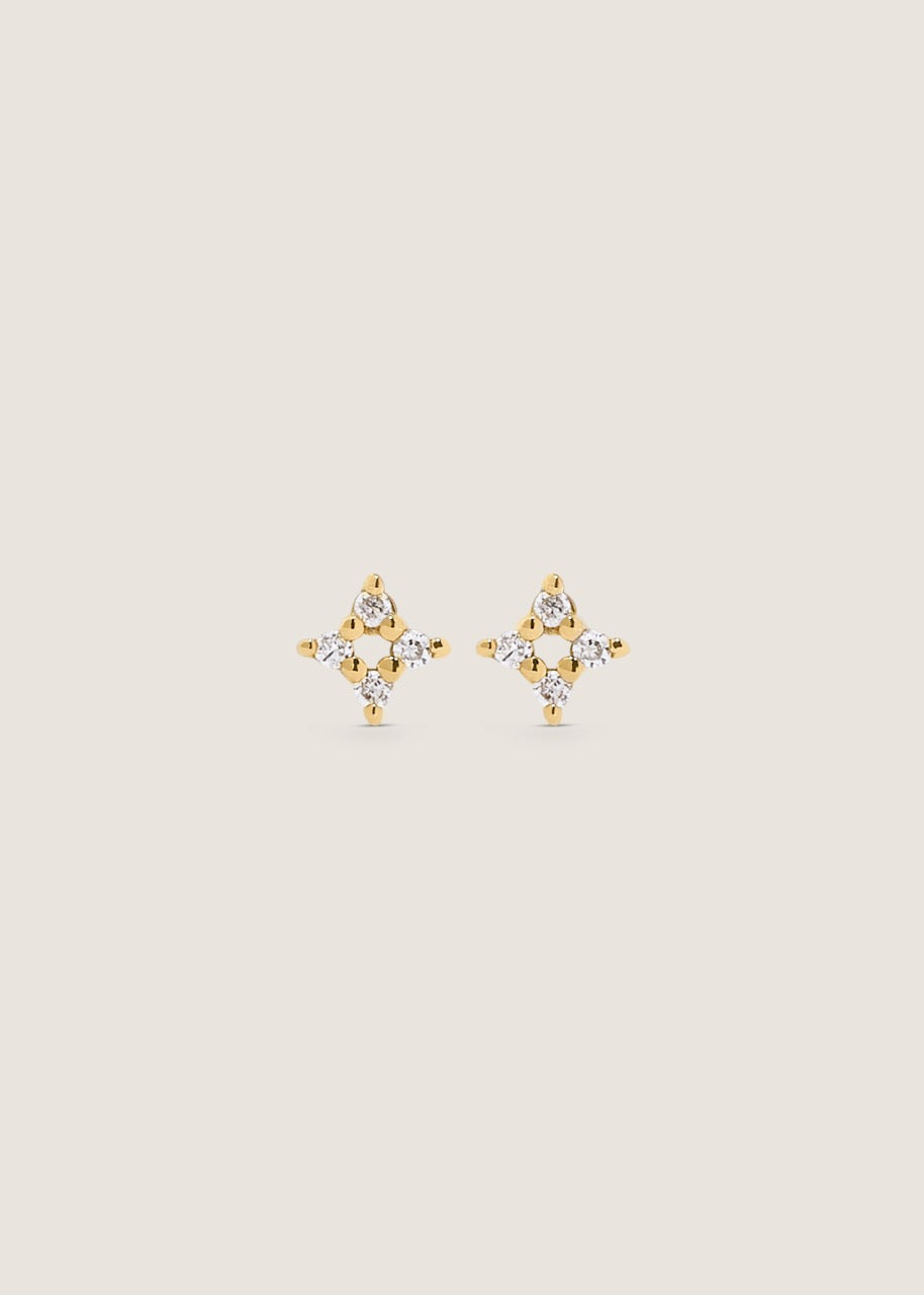 Star-shaped diamond stud earrings for any piercing. Each featuring four petite round diamonds in a four-point-star design, adding interest to your 24/7 look. Designed with a threaded flat back that sits flush against your ear for comfortable wear.