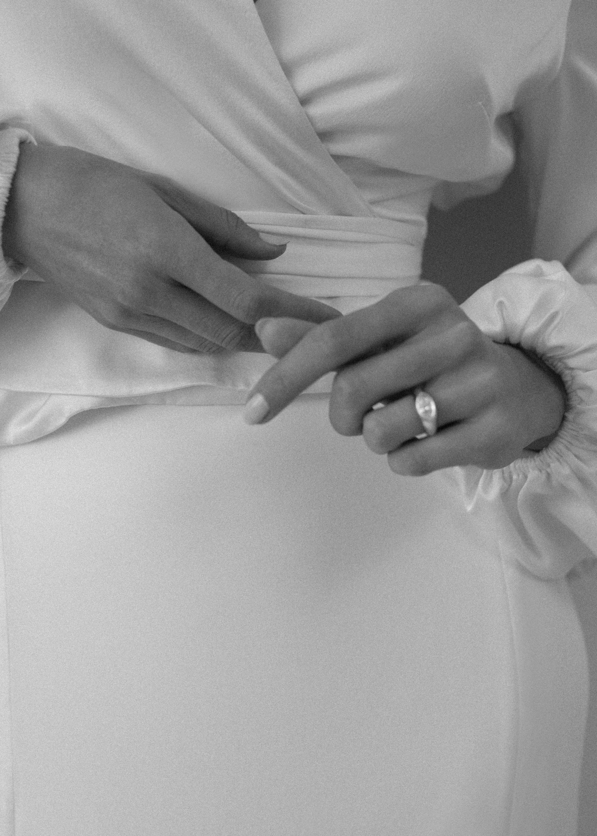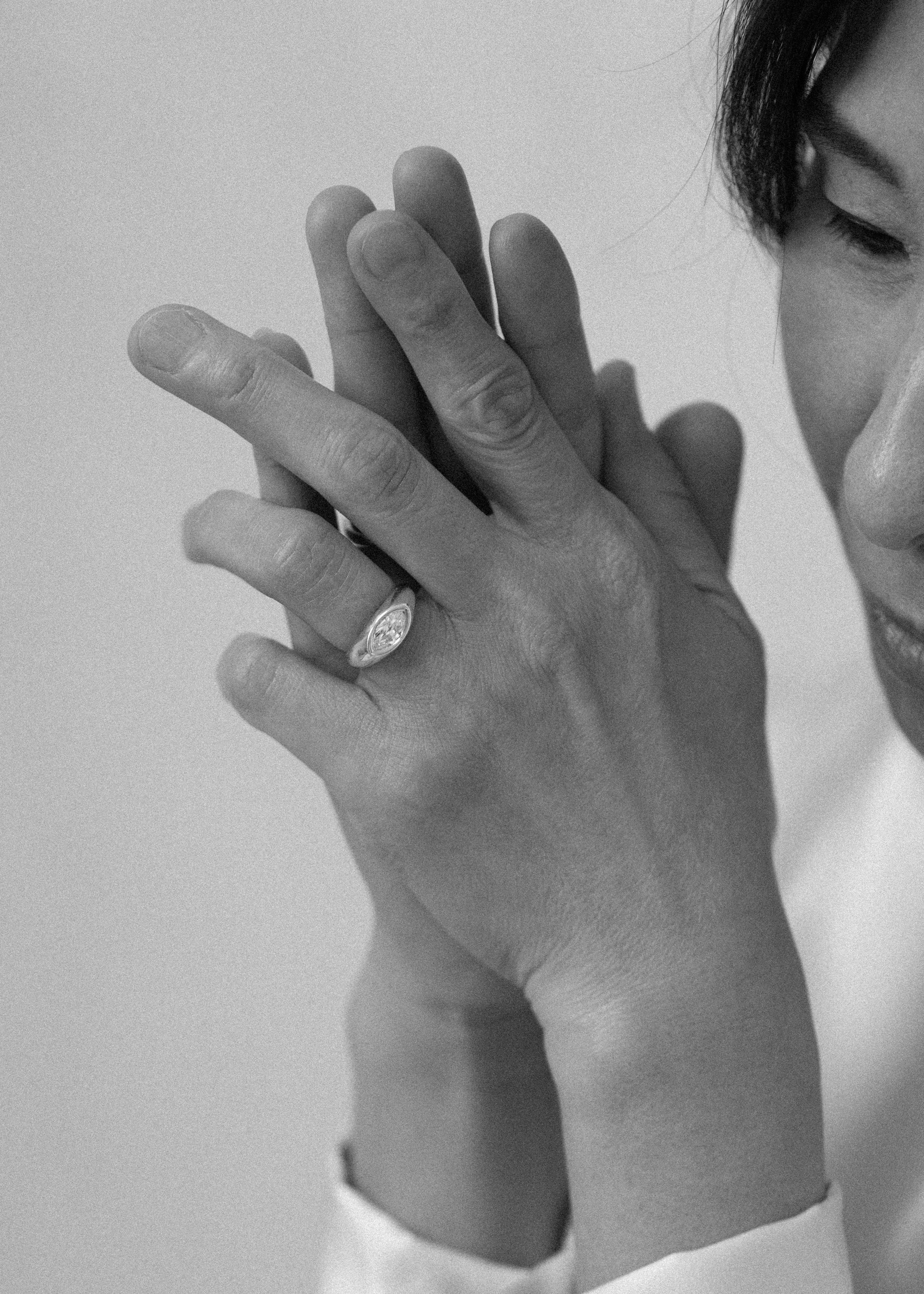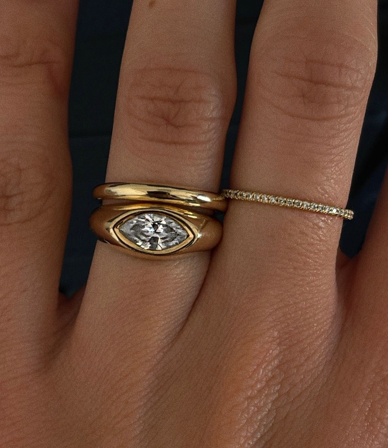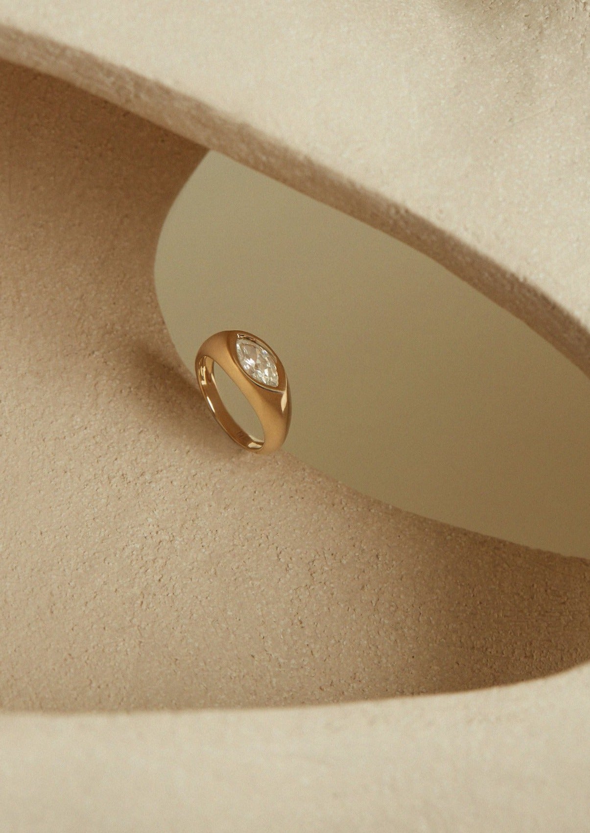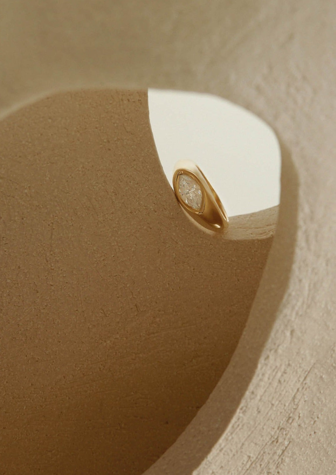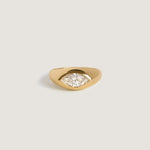 A bold piece with a flush burnish set marquise diamond—The Eloise is a vintage-inspired take on our best selling signet style.