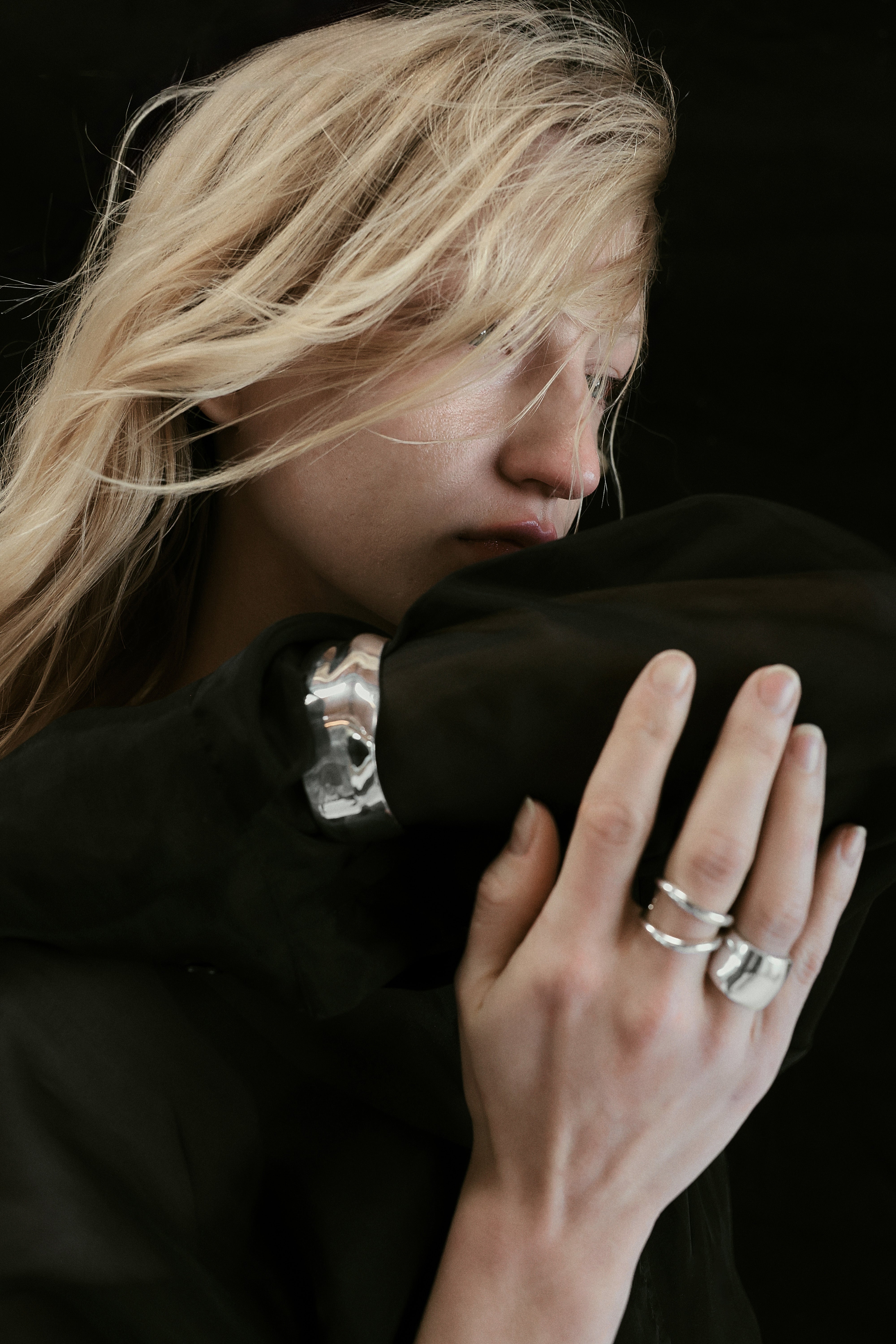 Our Figura Cuff Bracelet echoes sculptural silhouettes found in nature. The wide, tapered design is organically shaped in sterling silver to sit like a work of art on your wrist.