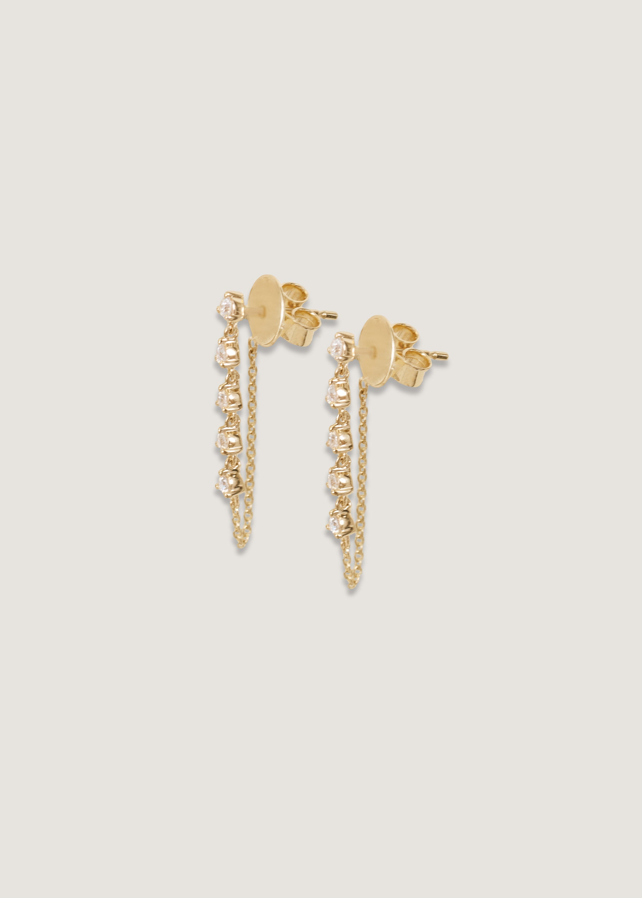 Featuring five round diamonds on a delicate chain, these earrings are designed to add a playful touch to your everyday ear stack.