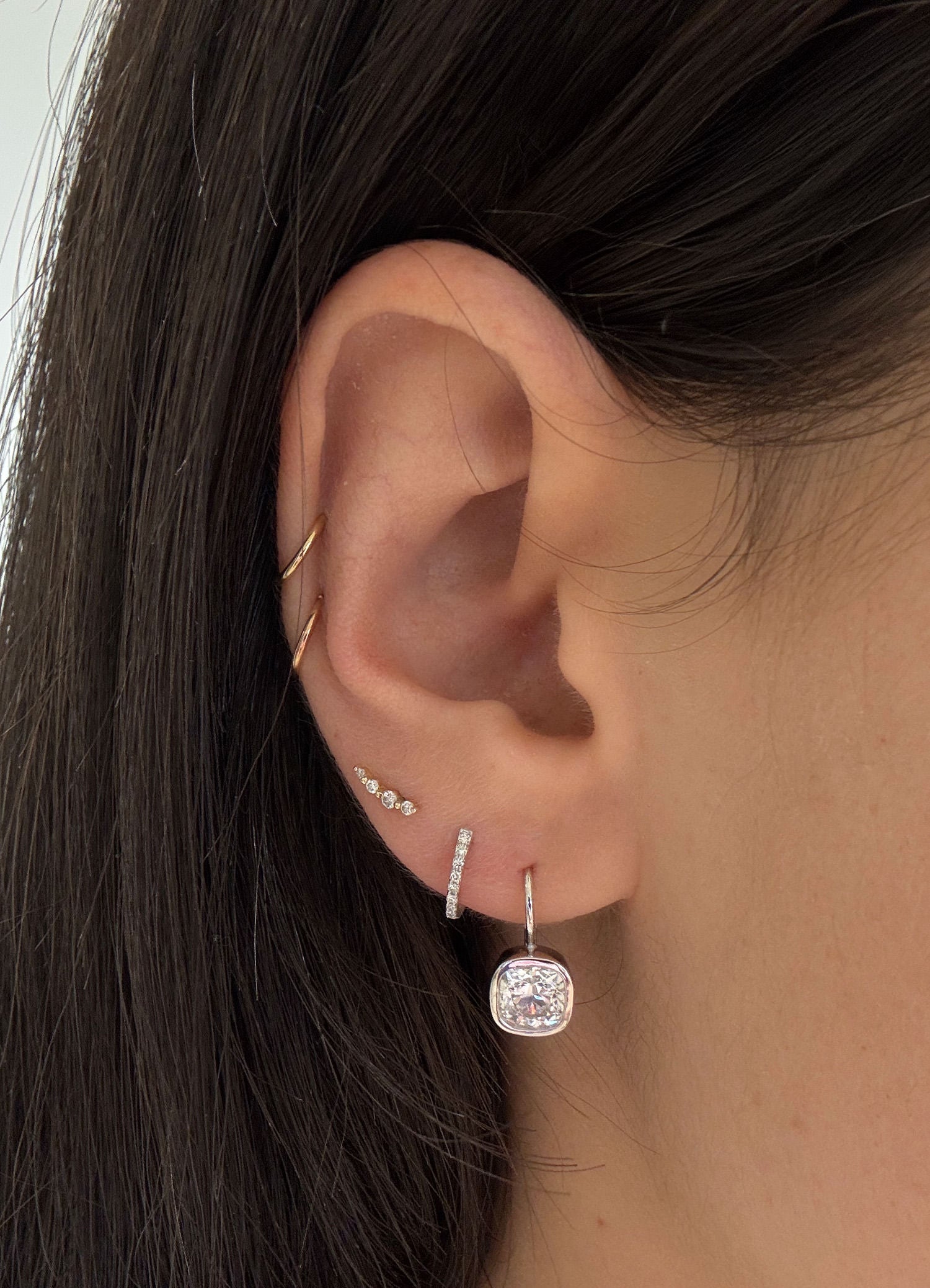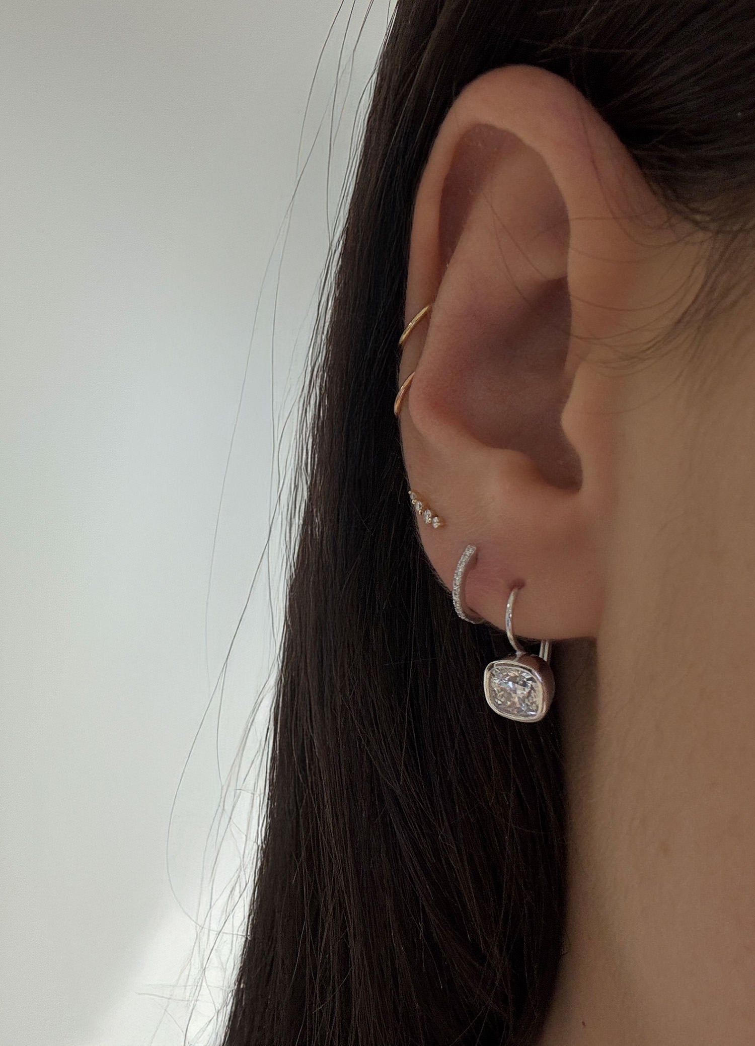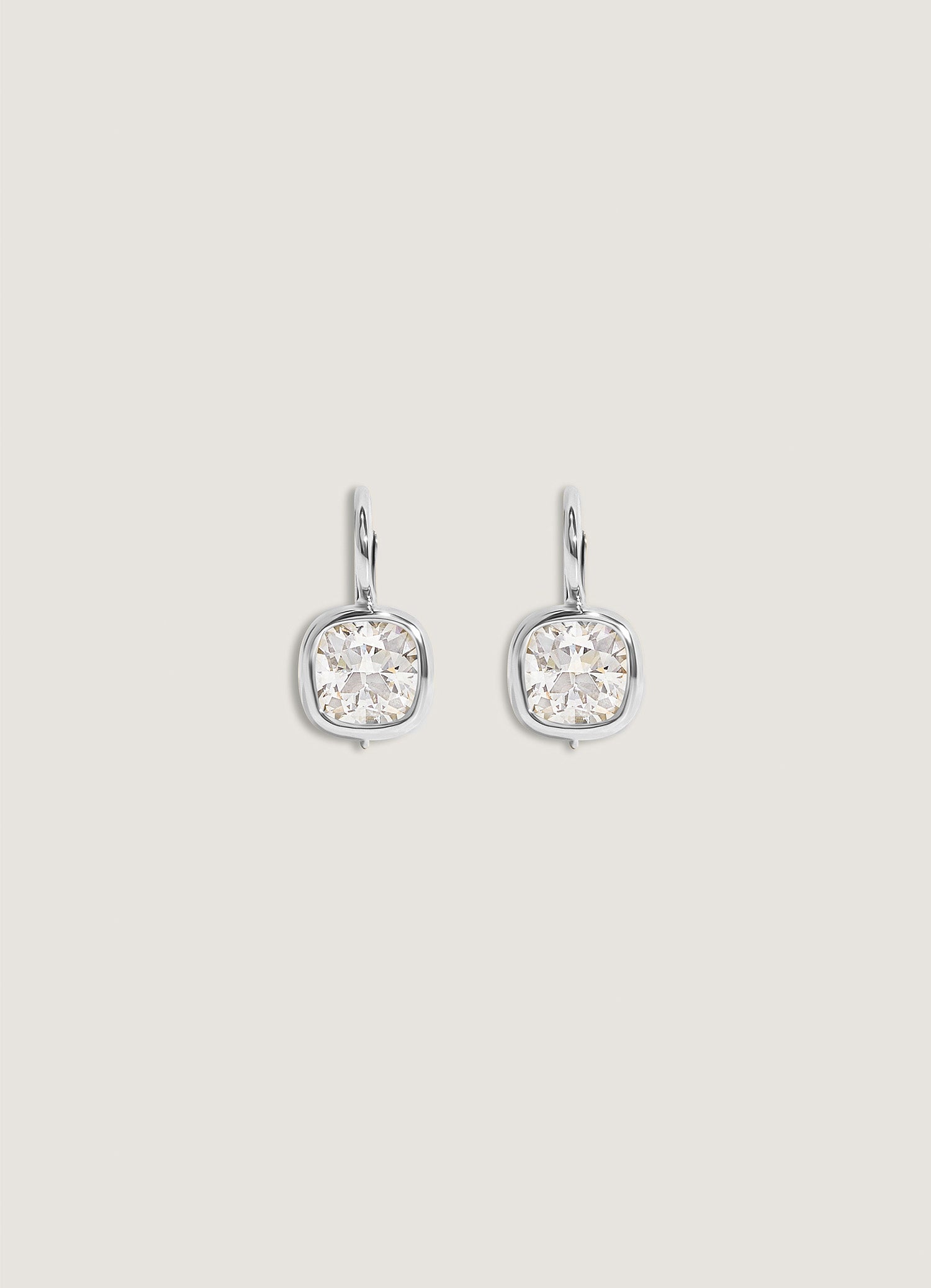 A study in quiet refinement. The Harper Earrings feature a cushion-cut diamond wrapped in gold, suspended from a delicate lever back for effortless movement. Understated yet luminous, they offer timeless grace with a modern edge—made to carry meaning from day to night, and year to year.