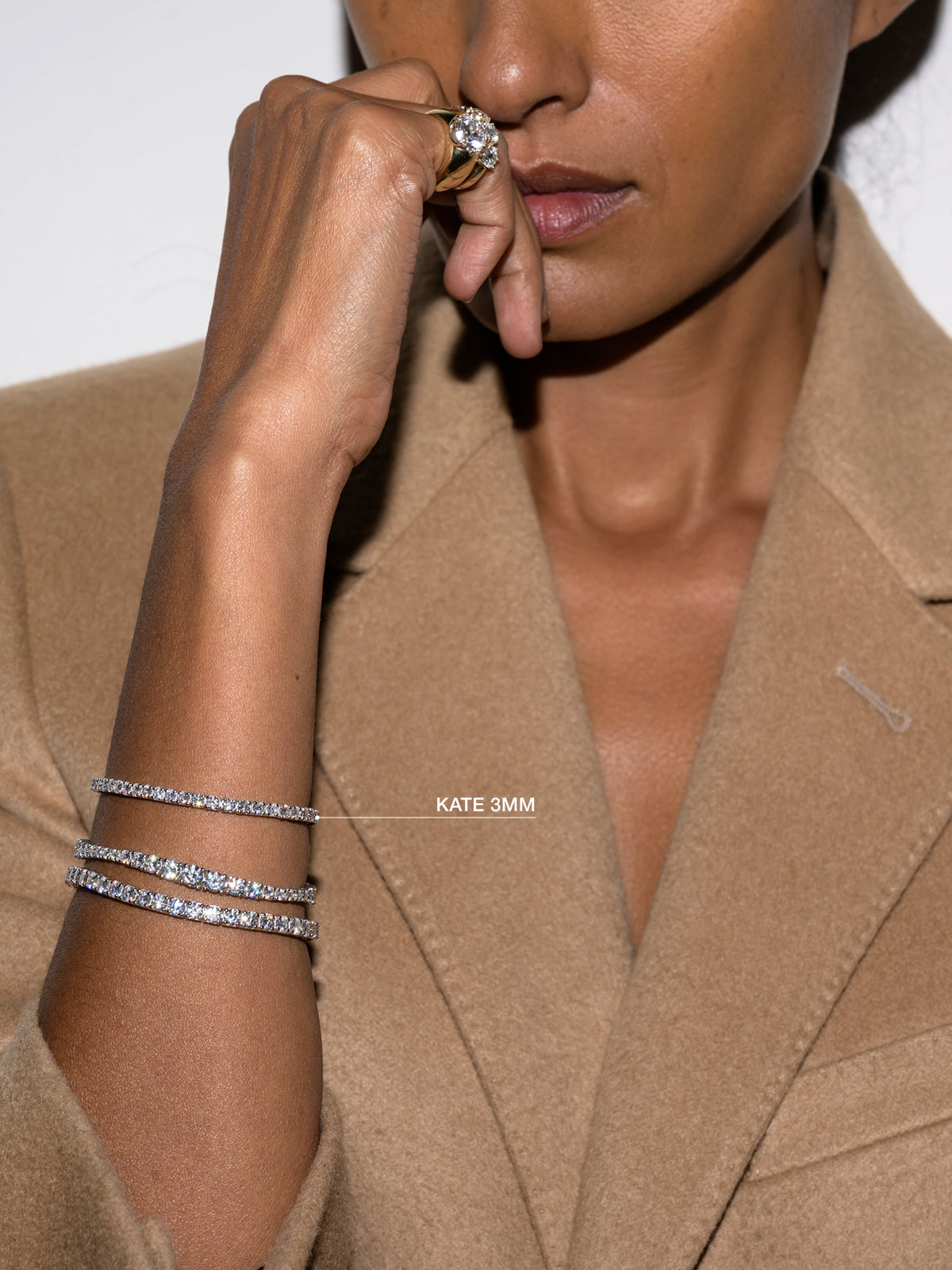 The Kate Rivière Bracelet features 3MM lab-grown white moissanite gemstones, each secured in a timeless four-prong setting and finished in 18k gold vermeil. Meticulously crafted with fine-jewelry integrity, this refined tennis bracelet is designed for everyday wear and secured with a box clasp and double safety hooks for added security.
