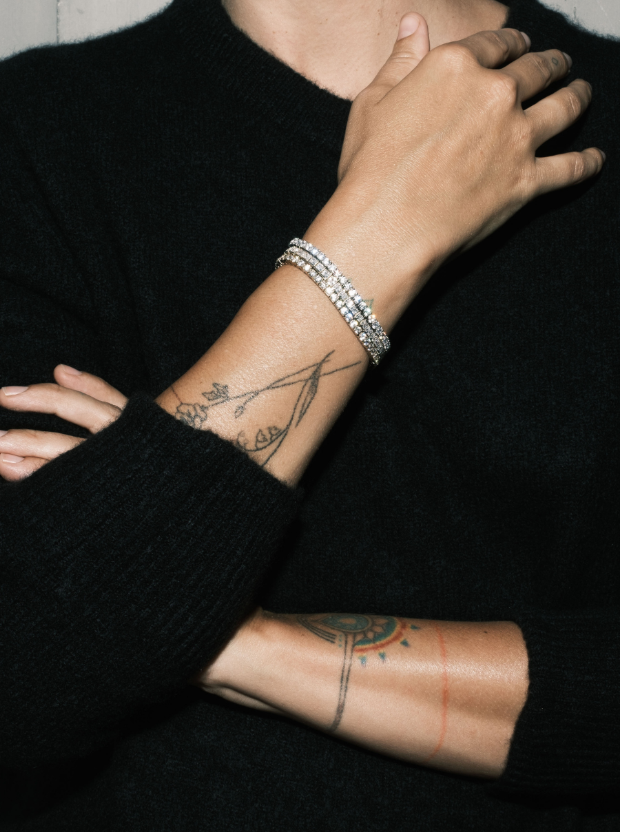 What was once reserved for special moments, the single-strand diamond bracelet is reimagined with individually set round-cut lab-grown white sapphires and a custom clasp to elevate your every look or complete your set if you already own the Kate necklace. Even the most discerning jewelry eye will do a double take. She was carefully designed using fine jewelry craftsmanship with a custom Dorsey clasp.