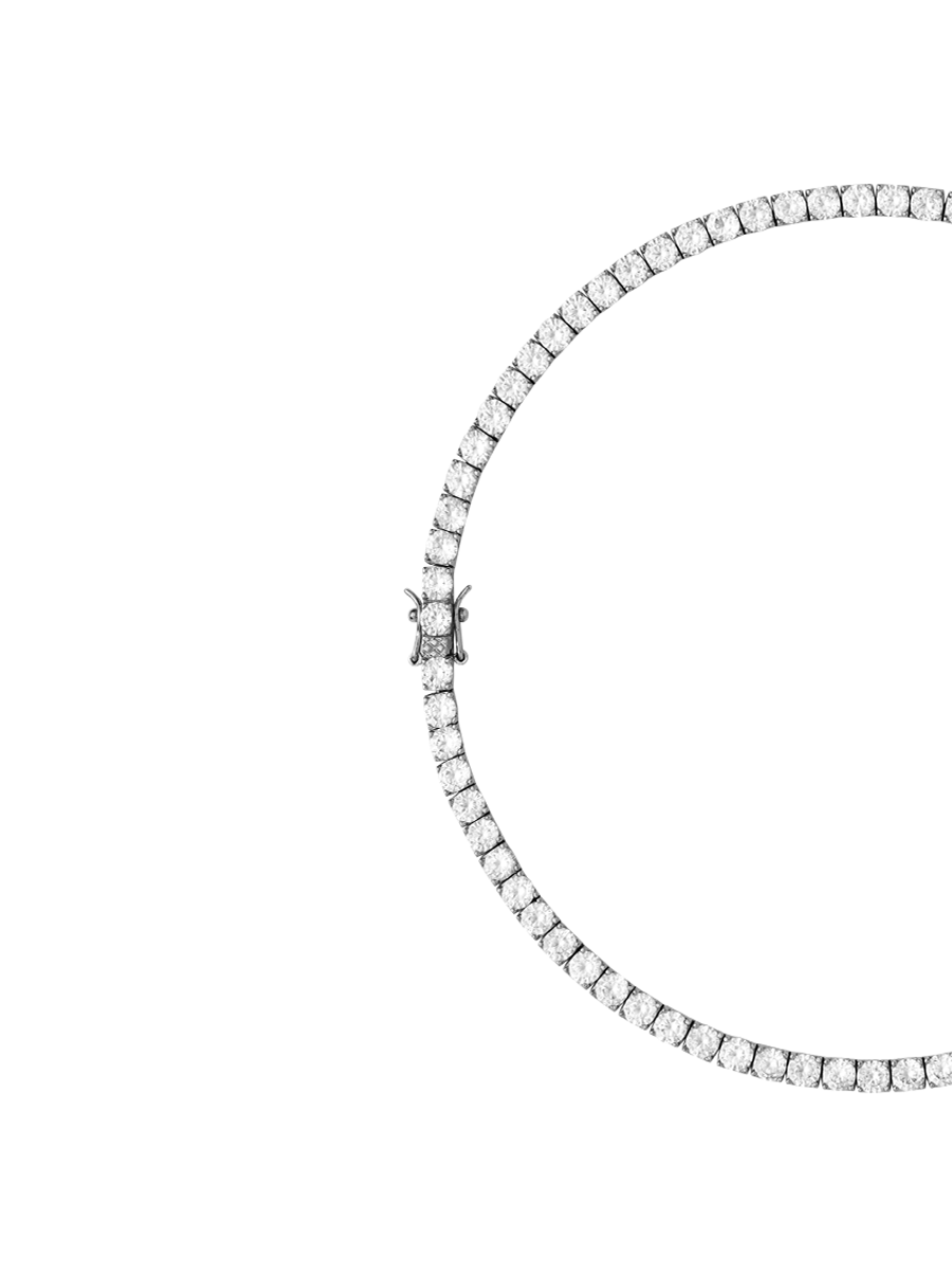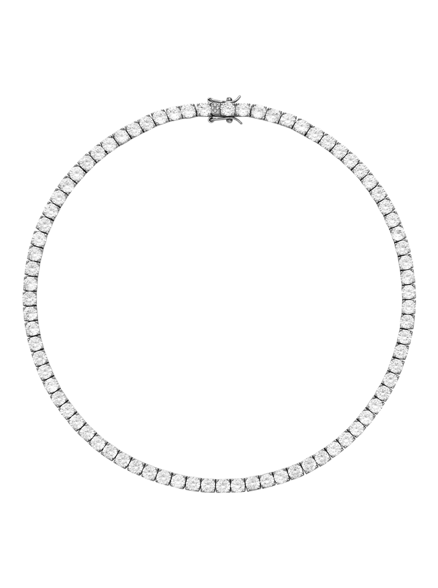 A Dorsey classic featuring our largest stone size offered. This Kate Rivière Necklace features 4.5MM lab-grown white sapphire gemstones, each secured in a timeless four-prong setting and finished in sterling silver. Meticulously crafted with fine-jewelry integrity, this enduring tennis necklace is designed for everyday wear and secured with a box clasp and double safety hooks for added security.