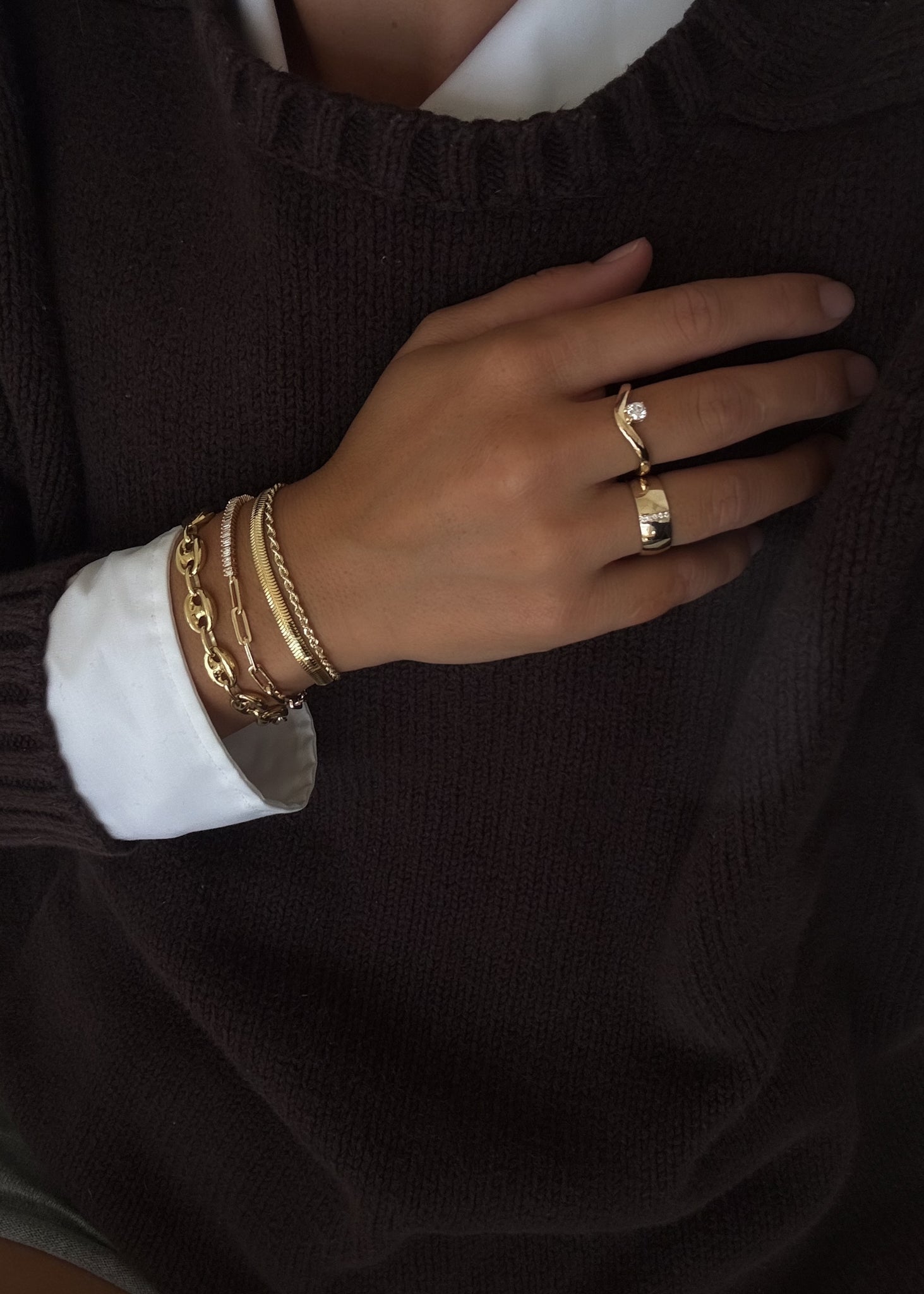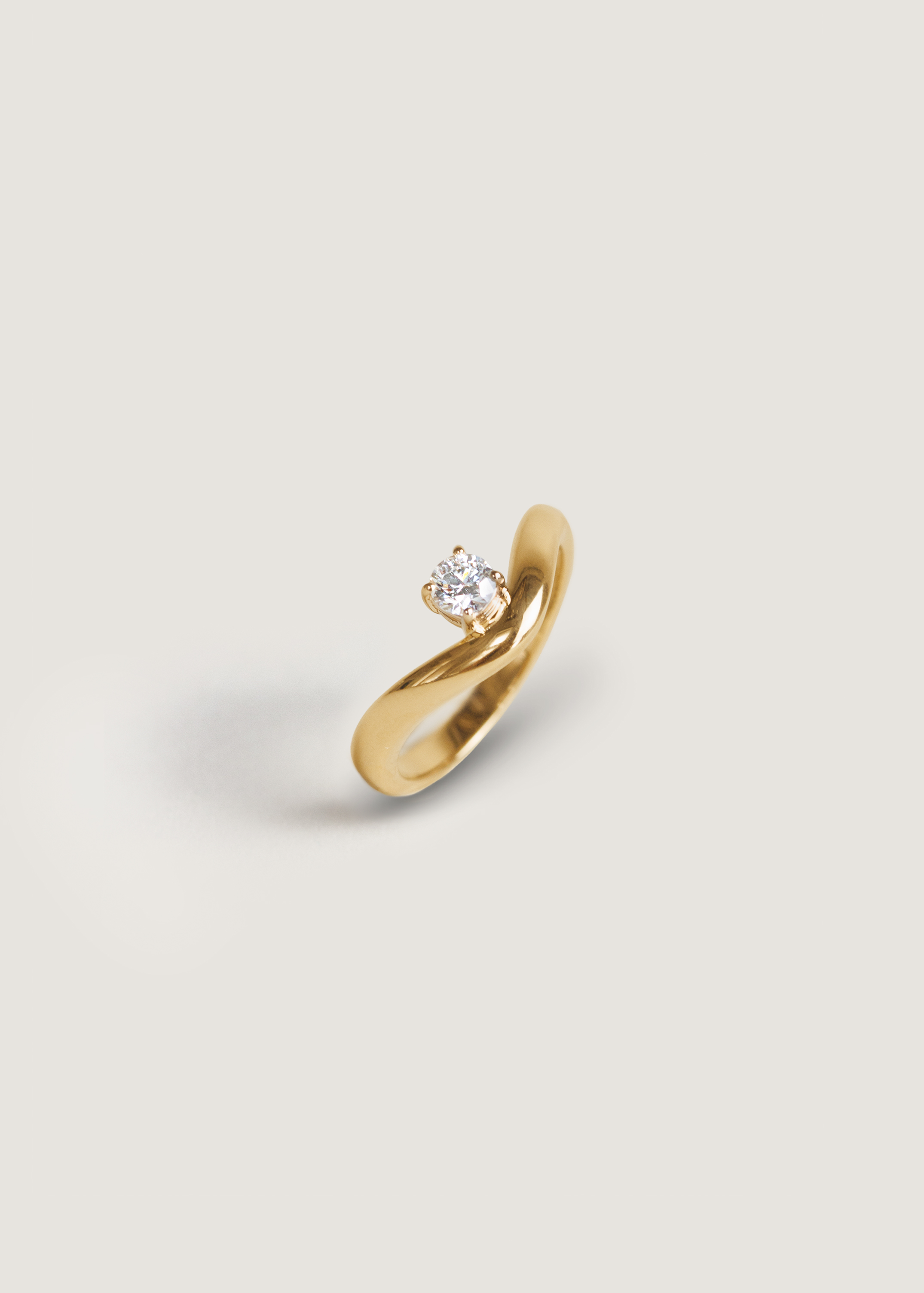 Sleek and modern, the Katherine ring features a round diamond set atop a 14k solid gold curved band.