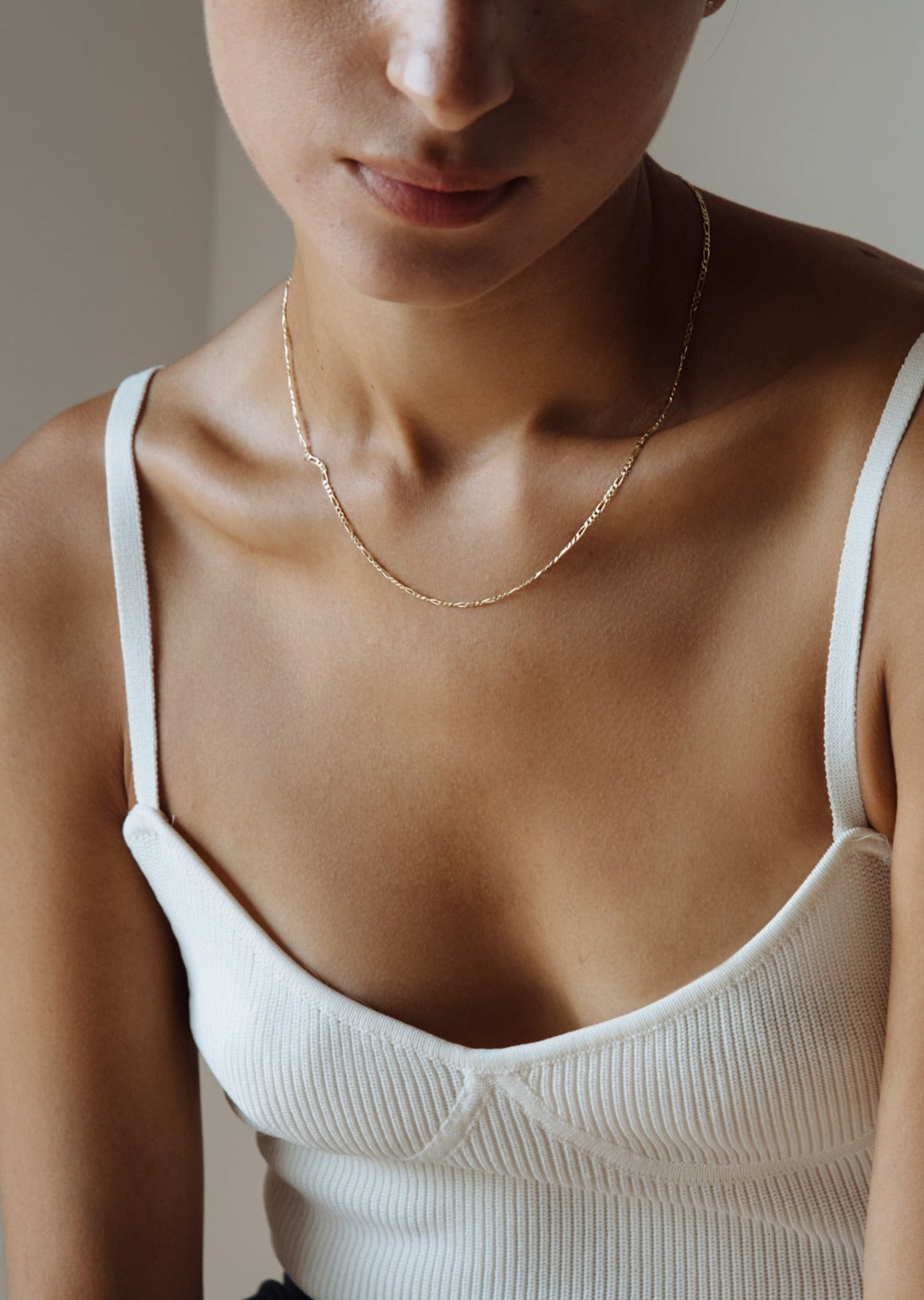 Elevated with subtle details in the chain, she's a great piece to layer with or to wear alone.
